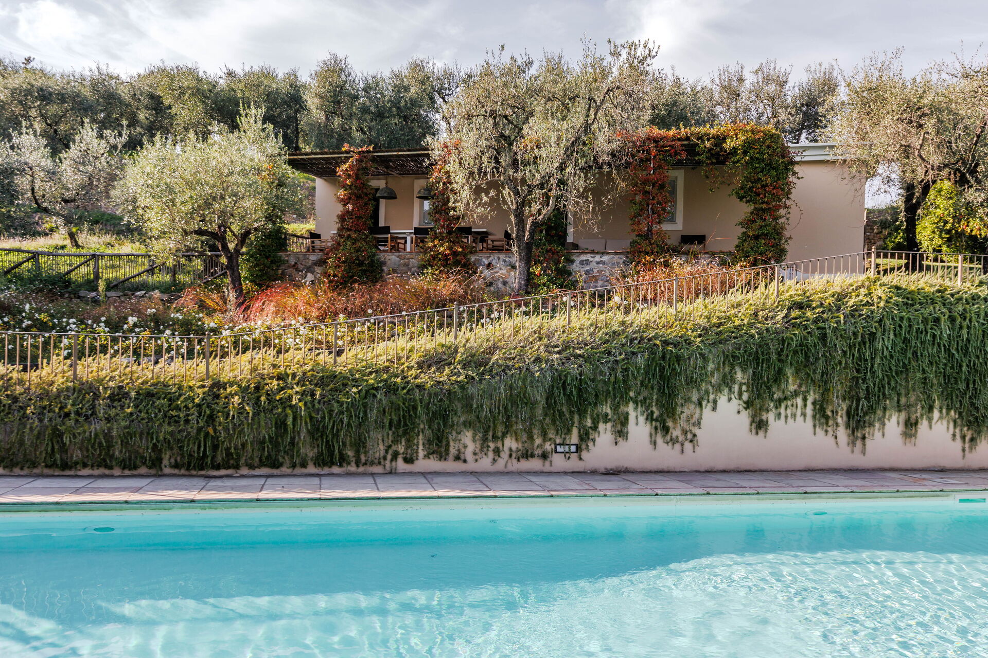 Villa immersa nel verde tra ulivi e vigneti, silenziosa e rilassante.