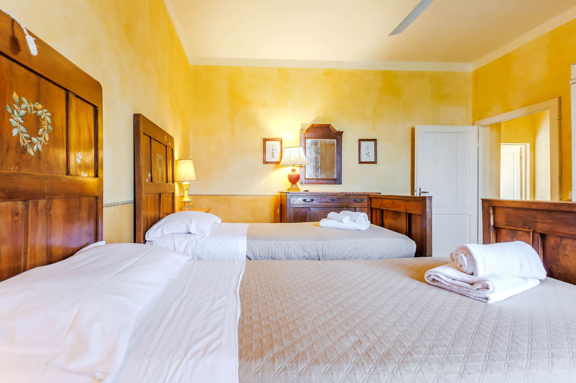 Primo piano: camera matrimoniale (aria condizionata), camera con due letti singoli (aria condizionata), bagno con doccia.