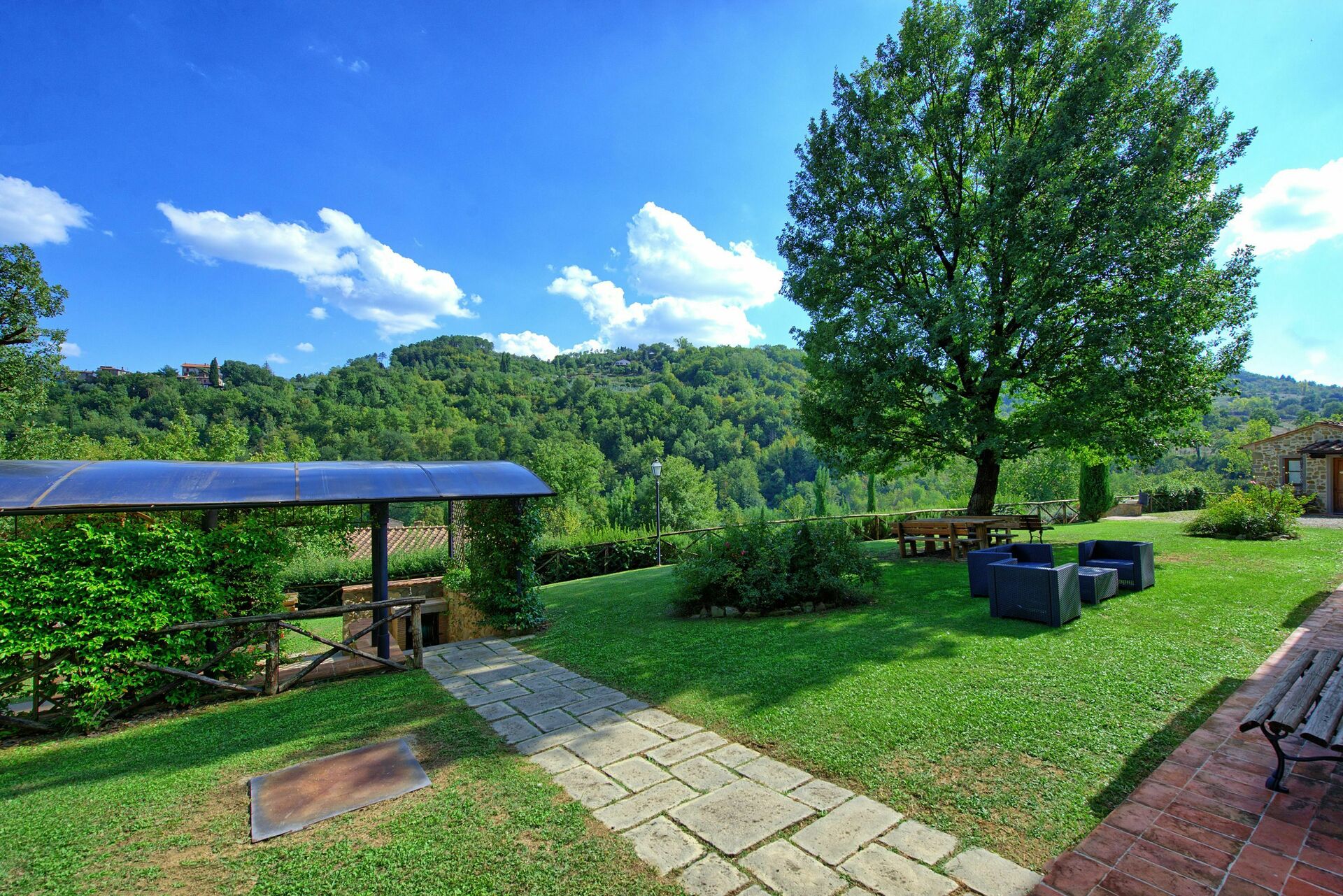 Il giardino è interamente recintato per garantire la massima sicurezza. La villa è circondata dal meraviglioso paesaggio collinare tipico di questa regione e gode di una vista panoramica indimenticabile. Questa casa vacanze in affitto è perfetta per chi vuole rilassarsi in totale privacy e tranquillità, godendosi la natura e la quiete circostante.