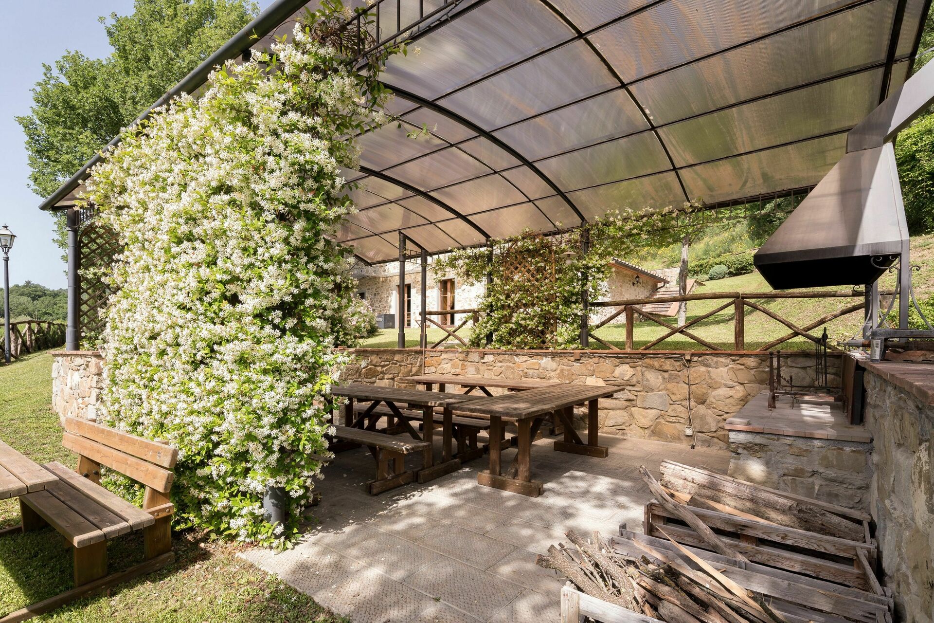 La proprietà è composta da un edificio principale e da due fienili ed è stata suddivisa in appartamenti per offrire agli ospiti la massima privacy, ma allo stesso tempo la possibilità di condividere la vacanza utilizzando un'ampia sala comune al piano terra dove poter cucinare e mangiare tutti insieme. Oltre a questa grande sala comune, è presente anche un'area barbecue esterna, dotata di un grande gazebo attrezzato con tavoli e sedie per tutti gli ospiti.