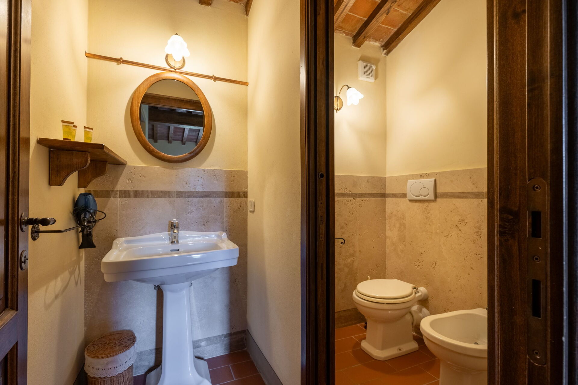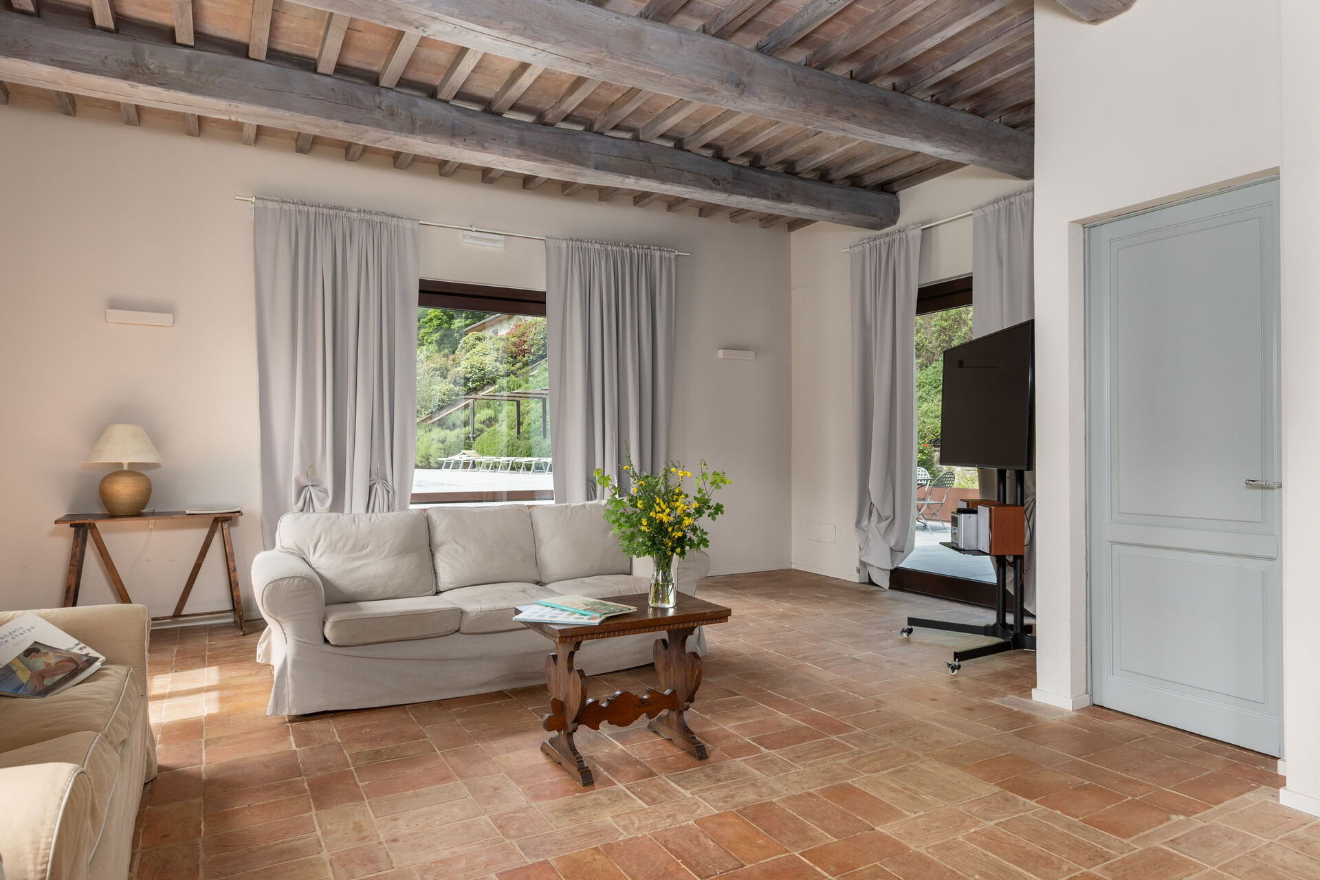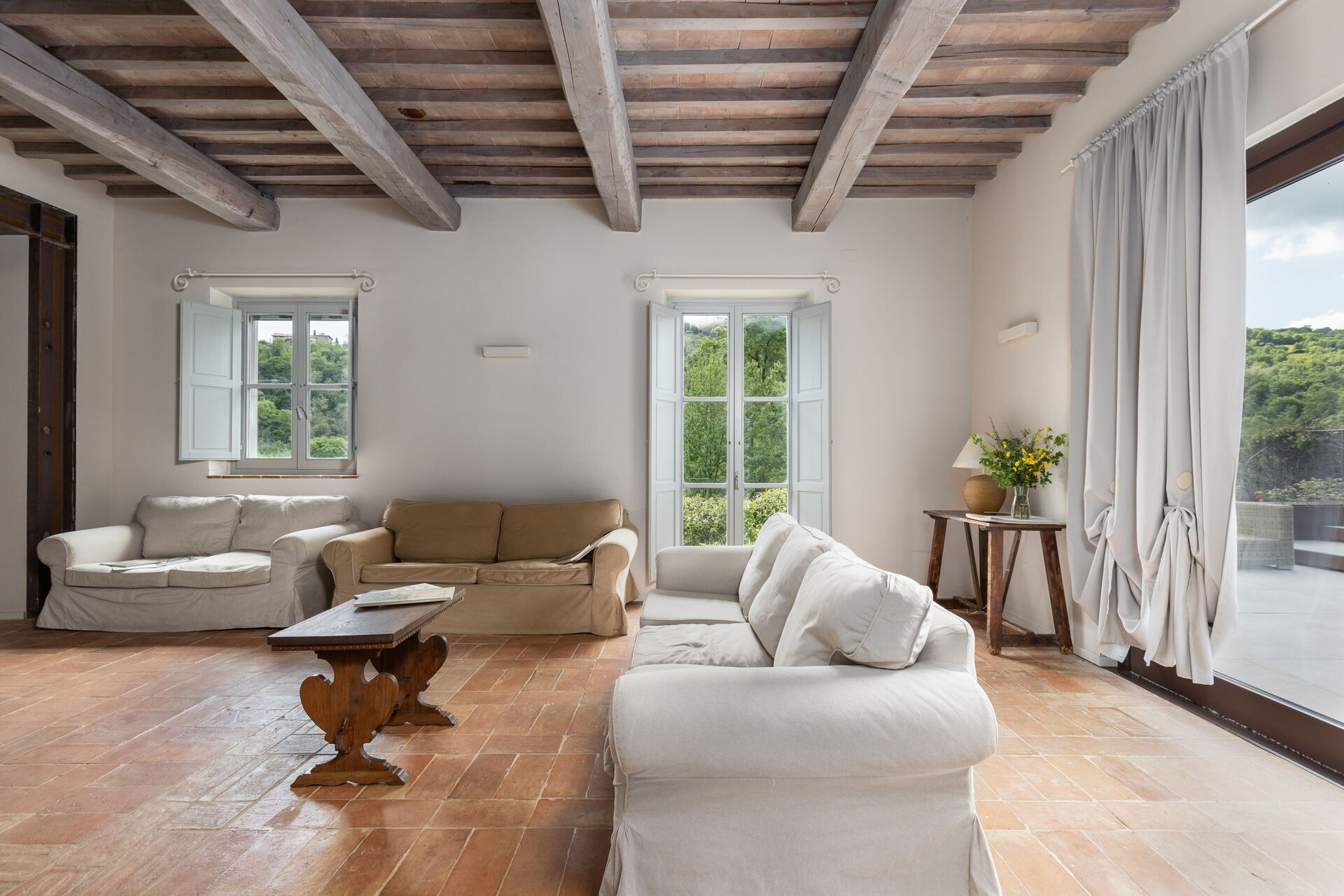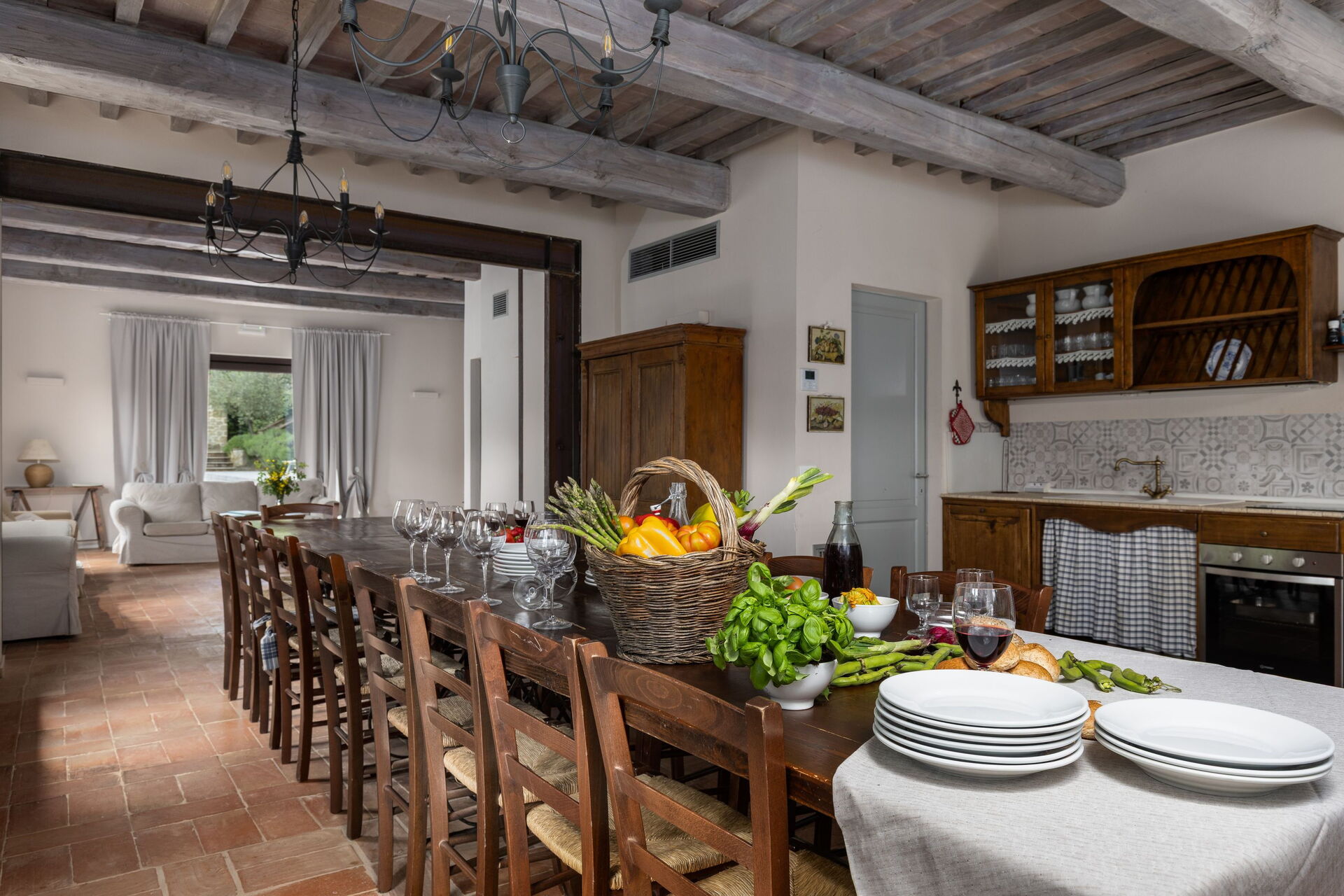 Tutti gli interni di questa bella villa sono arredati in linea con lo stile rustico tipico delle case di campagna toscane: materiali come il legno, il cotto e la pietra sono ricorrenti e faranno sentire gli ospiti completamente immersi in un'autentica vacanza toscana. Grazie alle sue 8 ampie camere da letto, la proprietà può ospitare fino a 16/20 persone: è la soluzione ideale per trascorrere una bella vacanza insieme alla famiglia o a un gruppo numeroso di amici.
