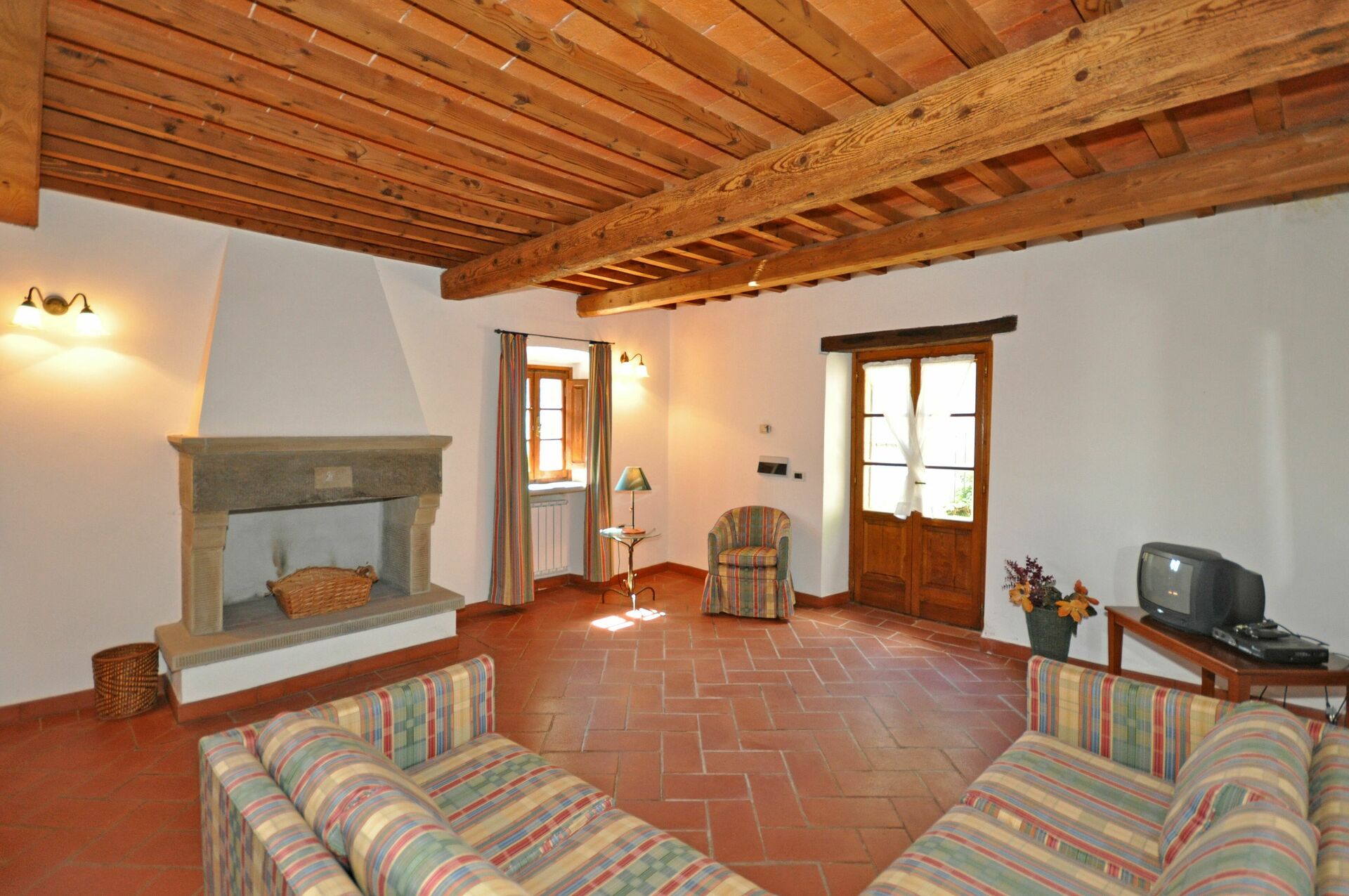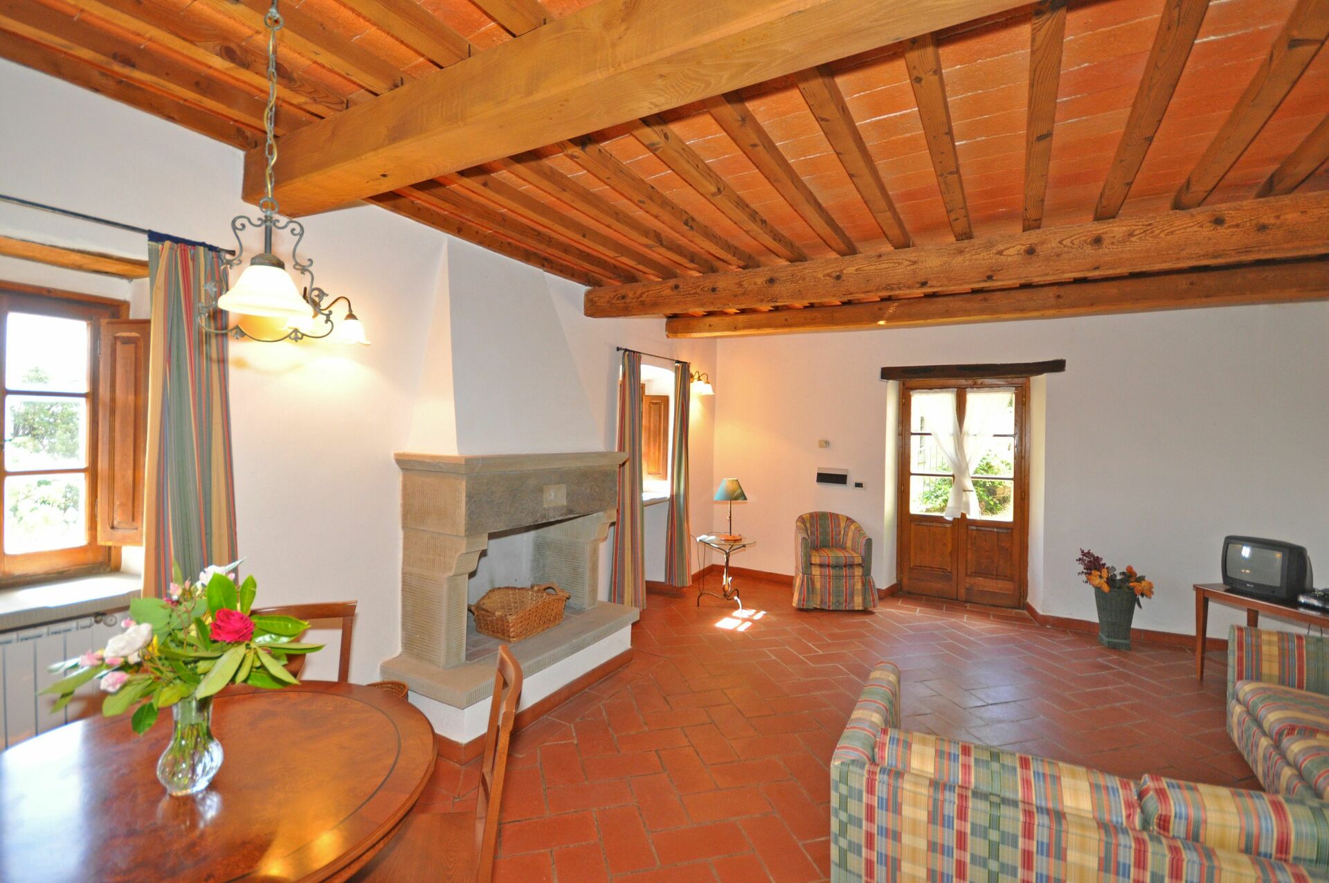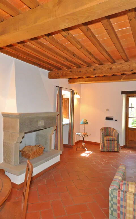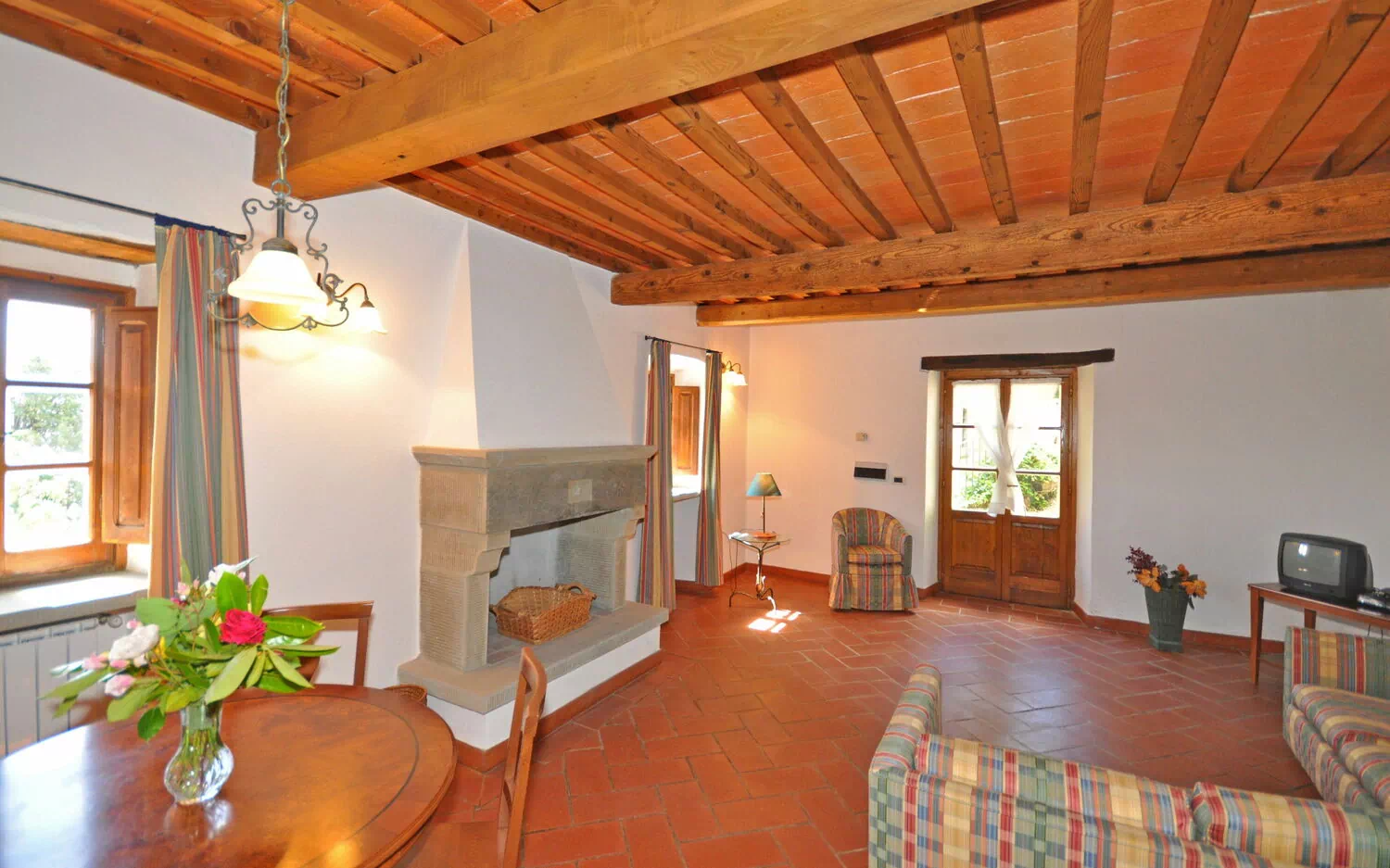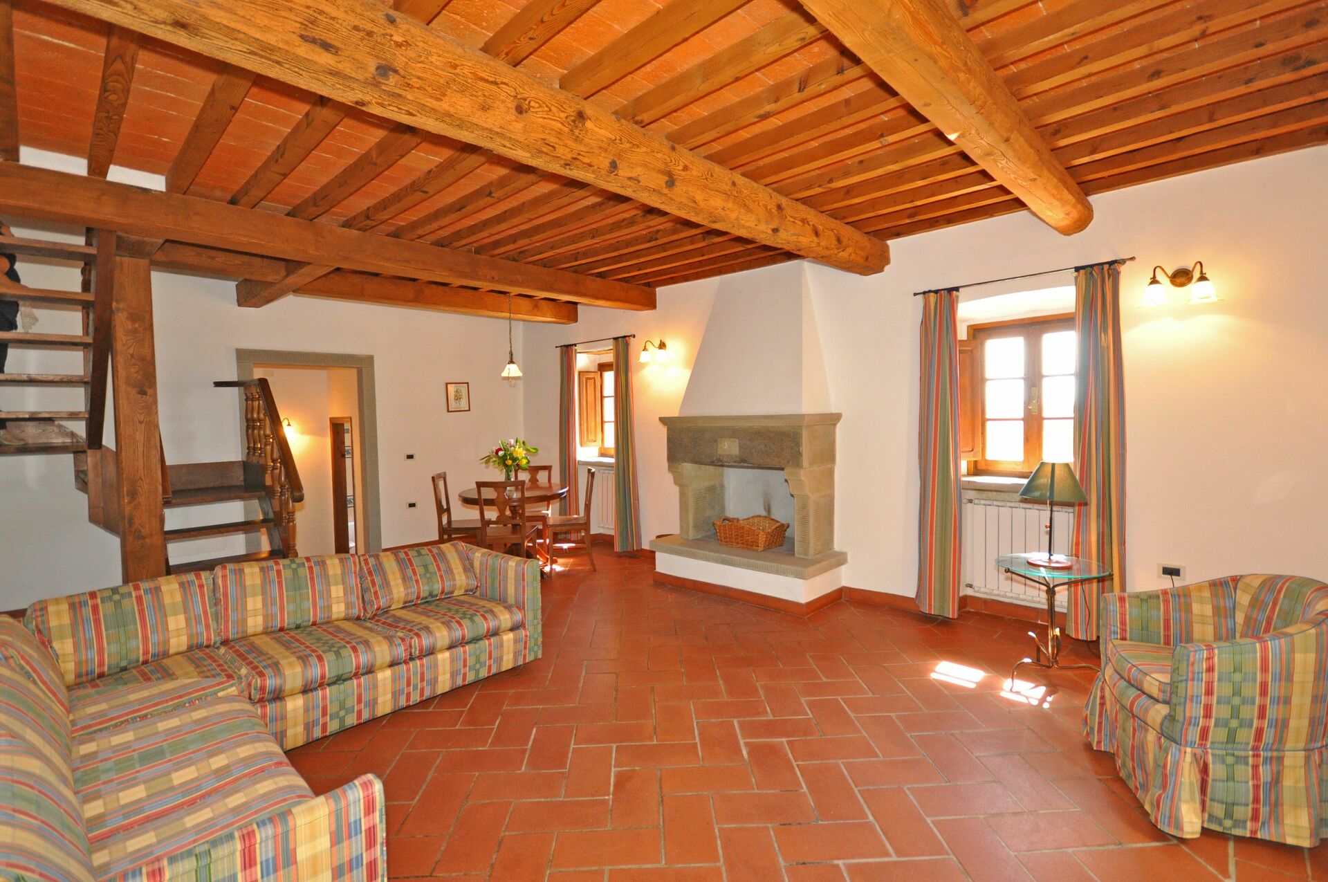 2 gradini più in alto: soggiorno (TV satellitare) con camino e zona pranzo.