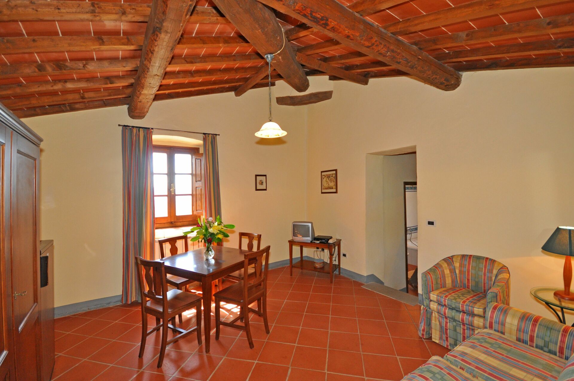 1° Piano: soggiorno (TV satellitare) con angolo cottura ( 2 piastre elettriche) e zona pranzo, piccolo terrazzino privato, coperto e attrezzato con tavolo.