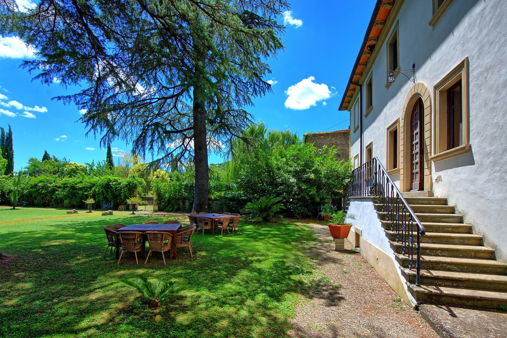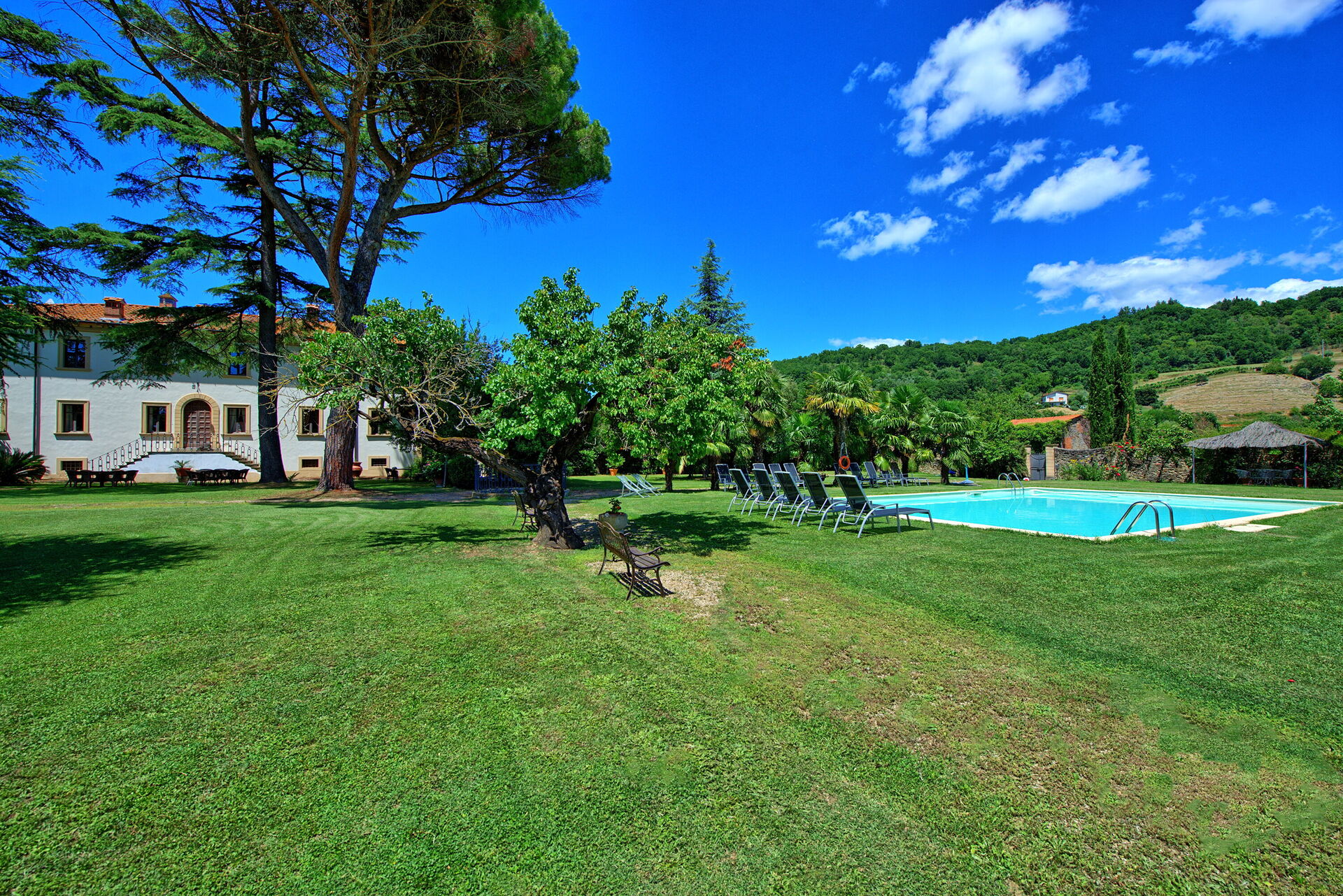 Se gli interni di Villa Capolona sono davvero magnifici, i terreni che circondano la proprietà non sono da meno. I 2500 mq di giardini sono totalmente recintati per offrire la massima privacy, sono forniti di tavoli, sedie, divani, amache. La piscina privata è attrezzata con comodi lettini ed ombrelloni ed è soleggiata tutto il giorno. Misura 12m x 8m ed è il luogo perfetto per un tuffo rinfrescante sotto il sole della Toscana.
