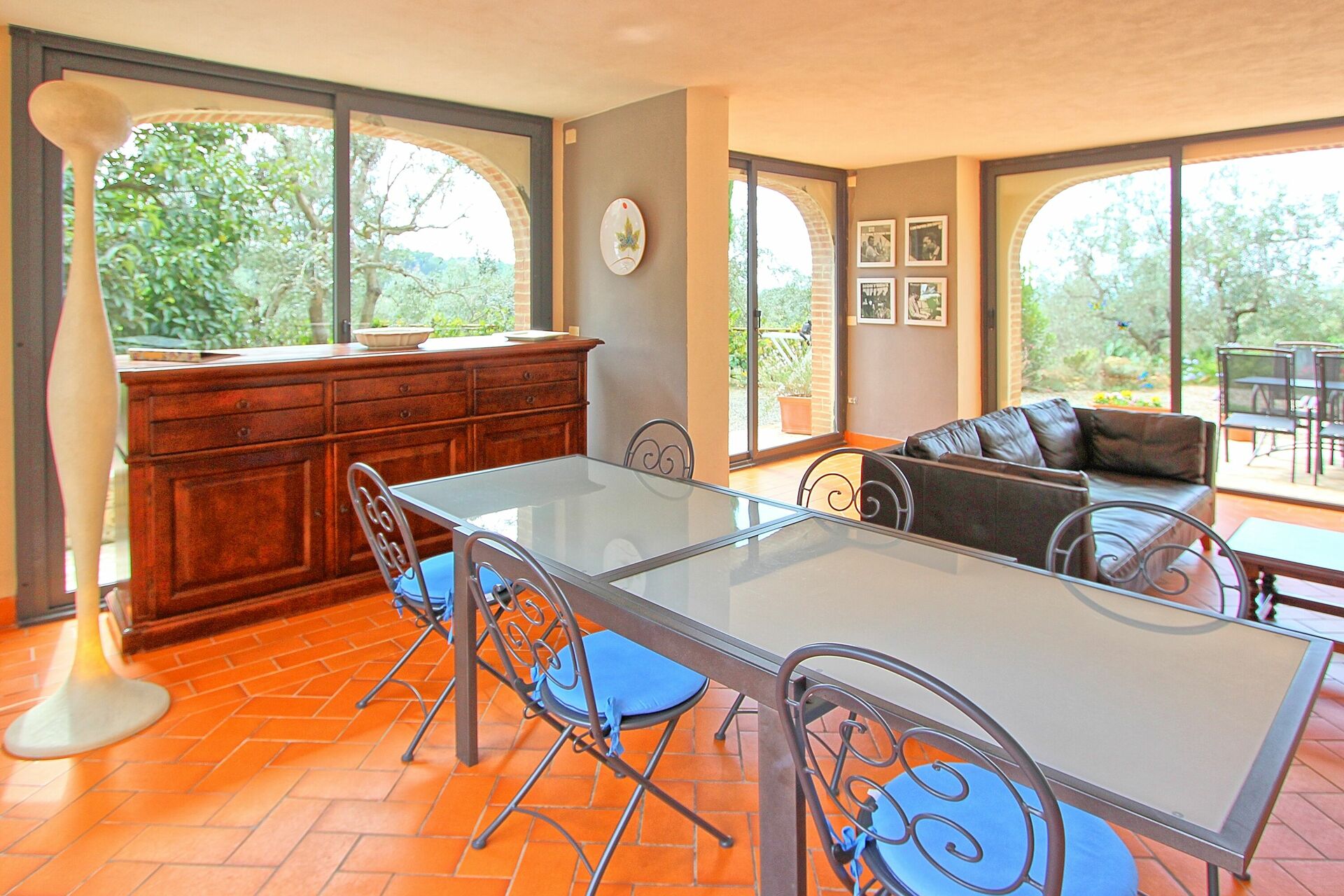 Confortevole appartamento in Toscana situato al piano terreno di una bella casa di campagna circondata da oliveti e situata a pochi chilometri dal mare. Situata a circa 1,5 km dal paese di Guardistallo, questa proprietà offre una bella visuale sulla campagna e sulla costa toscana. L’appartamento è stato recentemente ristrutturato ed è molto confortevole. All’esterno un giardino ed una piscina sono riservati all’uso esclusivo degli ospiti. I proprietari, persone cordiali e disponibili, vivono al primo piano della casa.