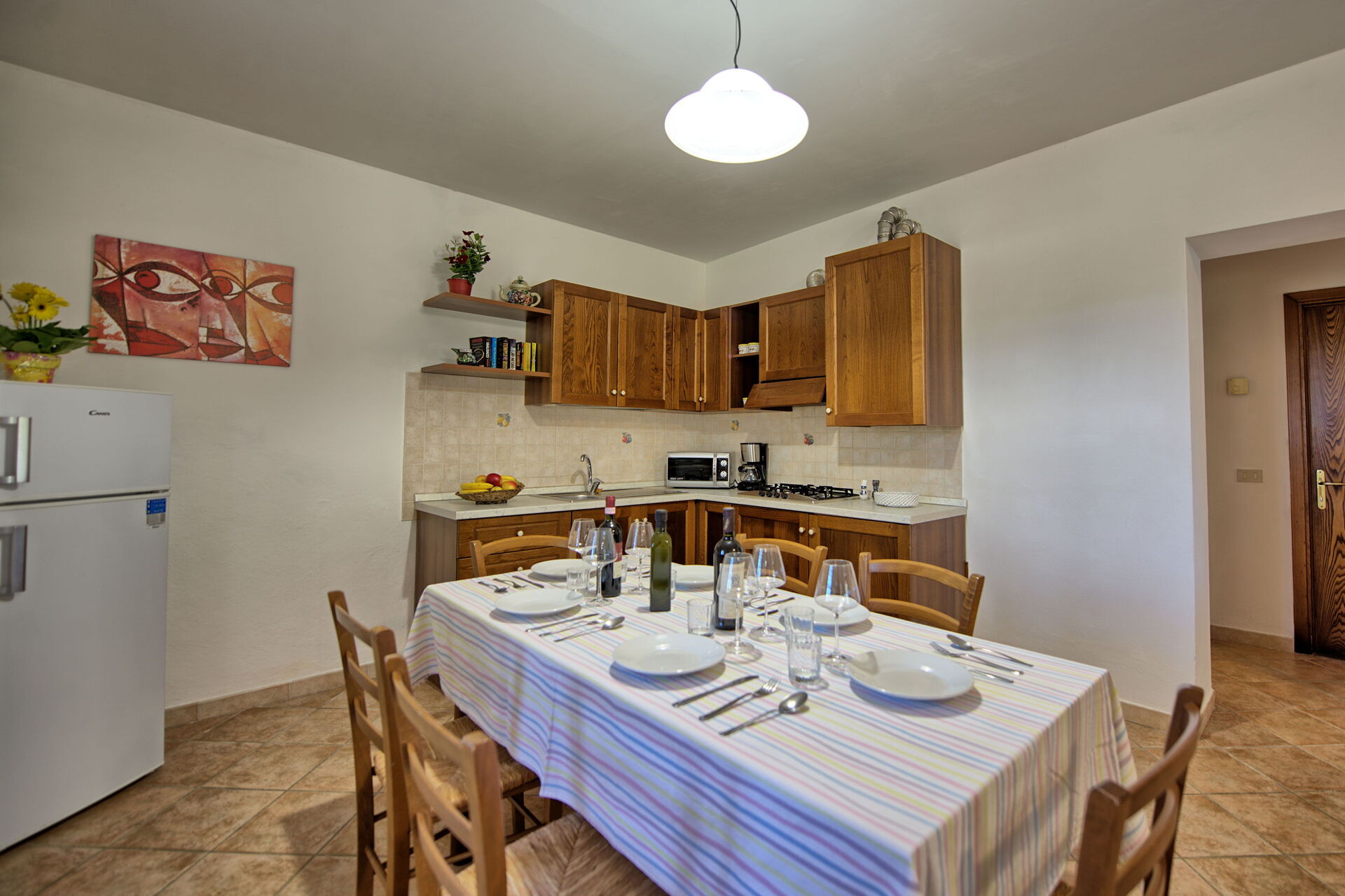 Piano terreno: soggiorno (TV satellitare) con divano letto matrimoniale e zona pranzo con angolo cottura, camera matrimoniale, camera con 2 letti singoli, bagno con doccia.