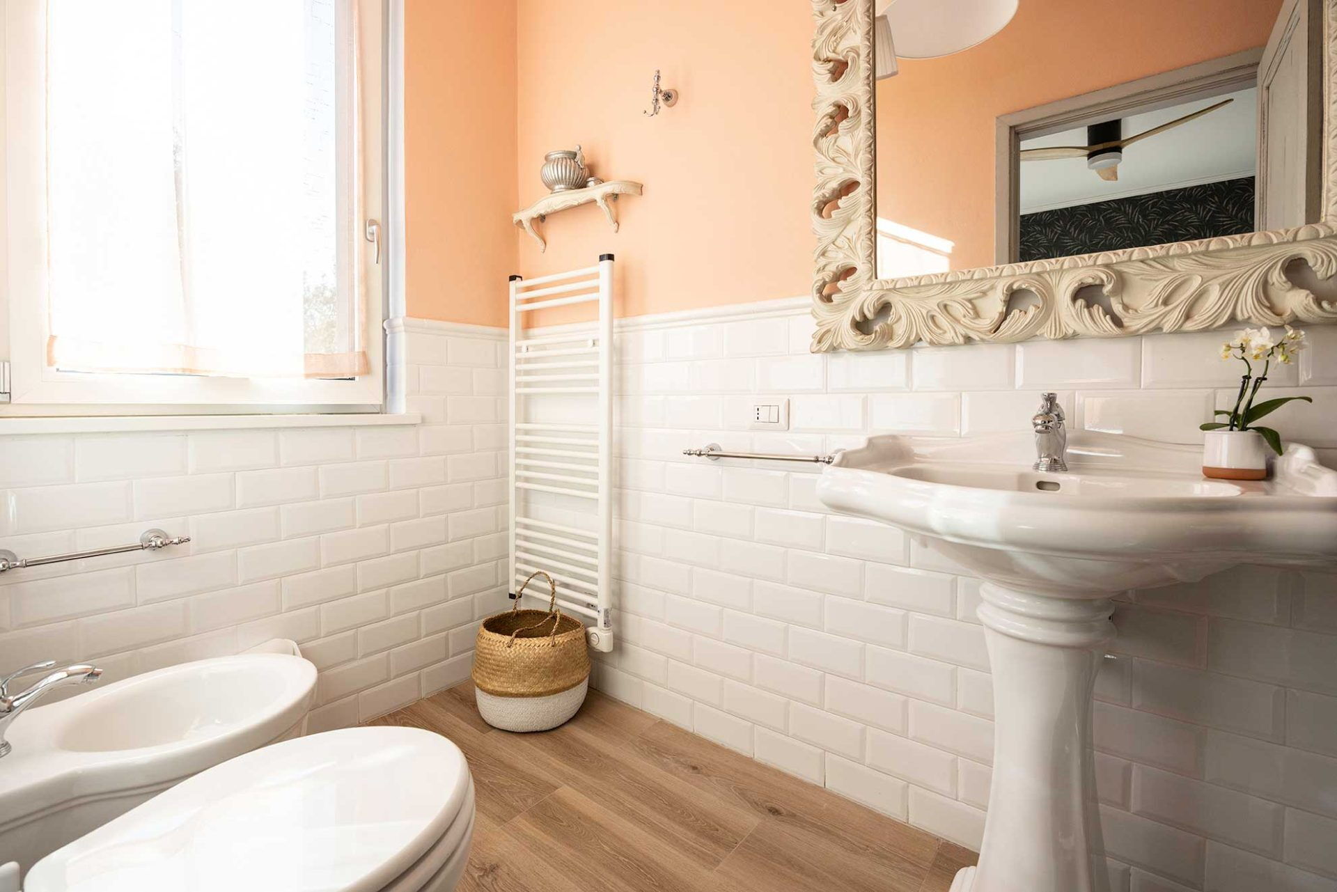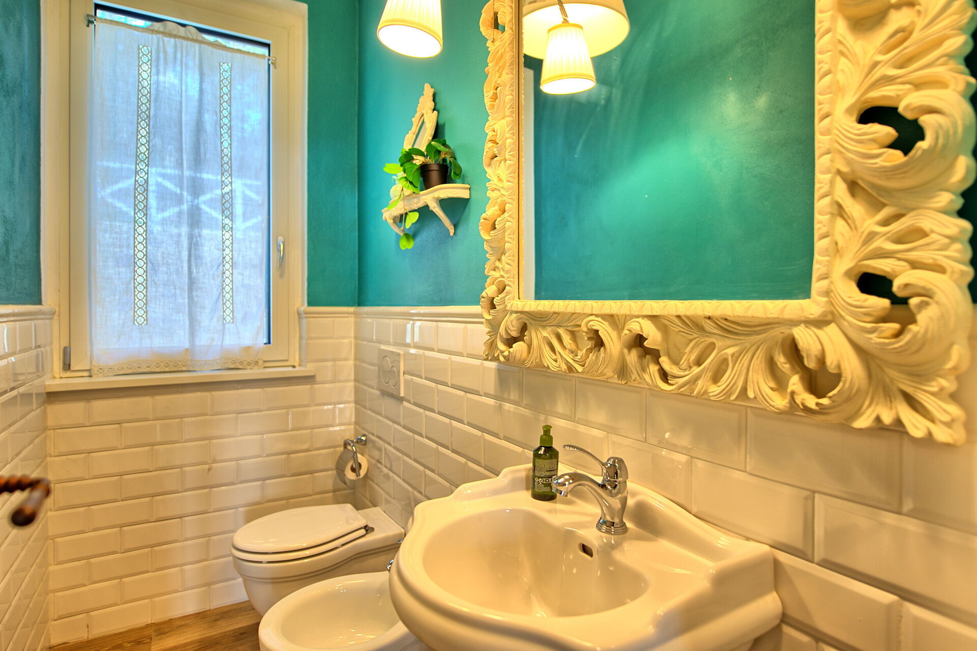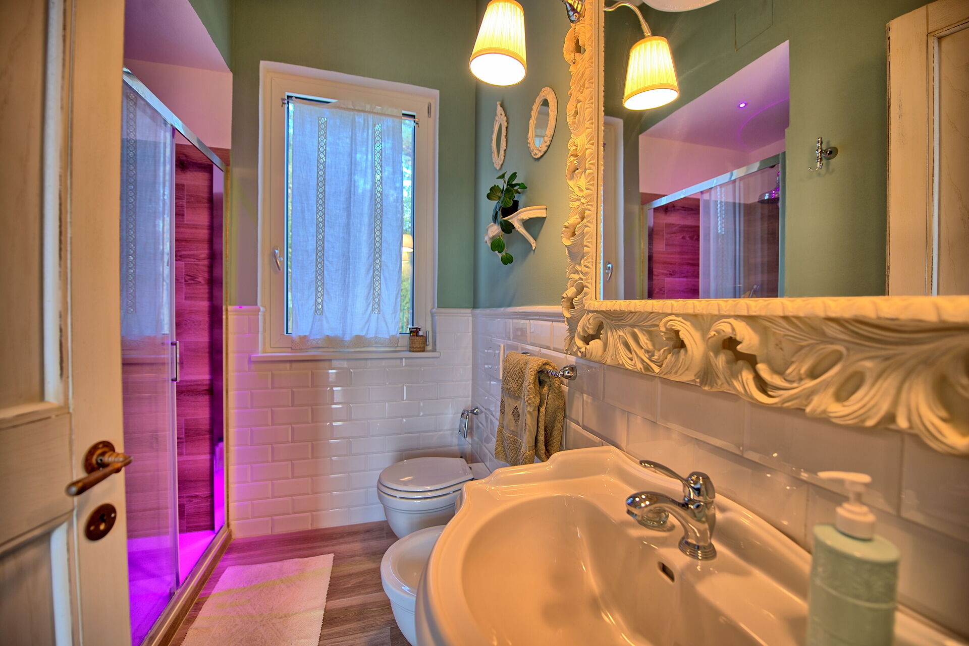 Piano inferiore (accessibile dalla zona giorno tramite una scala interna): sala ricreativa con biliardo, calcio balilla, divano, piccola libreria e giochi da tavolo; lavanderia con lavatrice, asciugatrice, stendino e ferro da stiro.