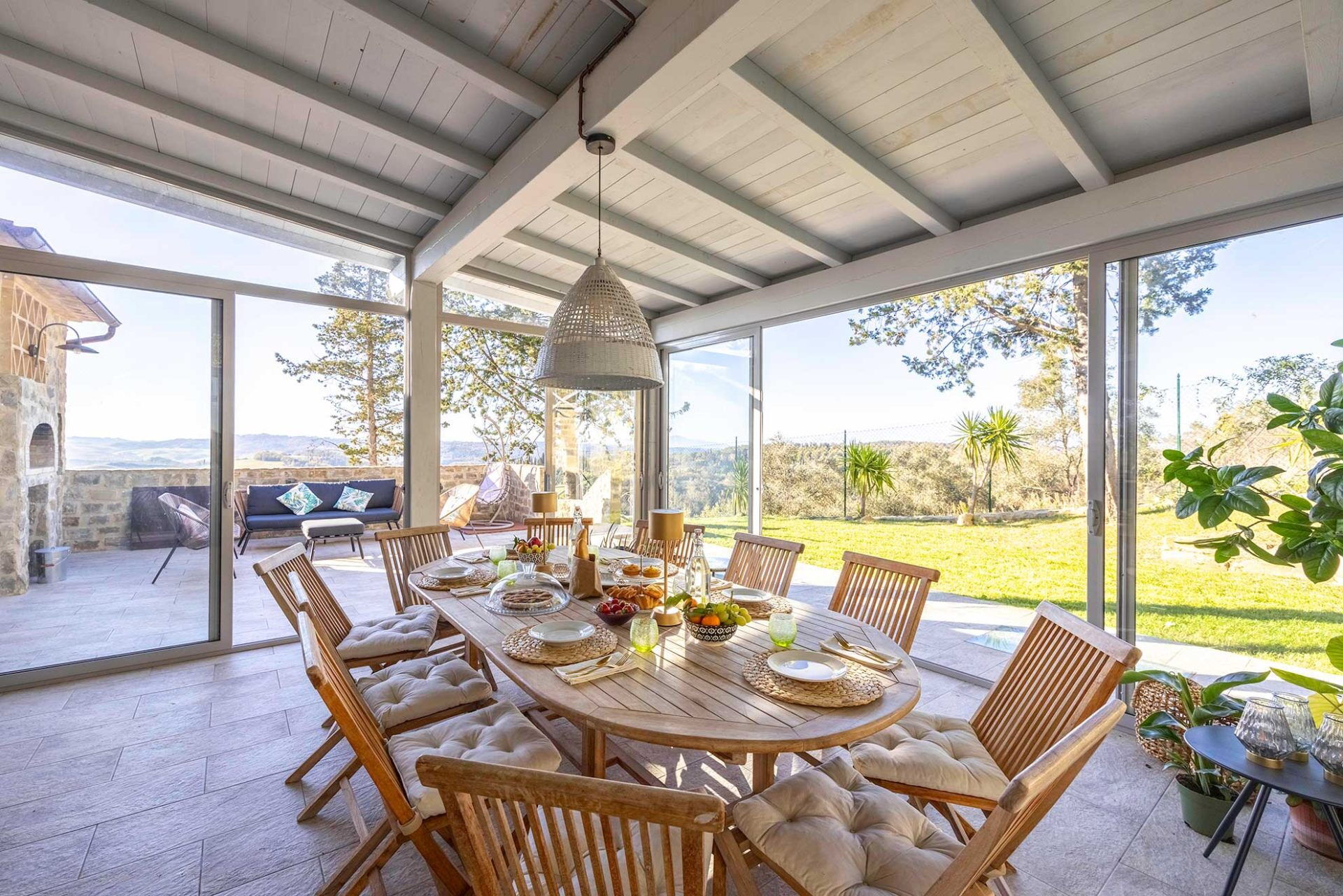 Esternamente gli ospiti potranno usufruire di ampi spazi attrezzati e della piscina riservata al loro esclusivo utilizzo. Una bella zona per mangiare all'aria aperta e attrezzata con tavolo, sedie, barbecue e forno a legna è stata allestita subito fuori dalla cucina.
