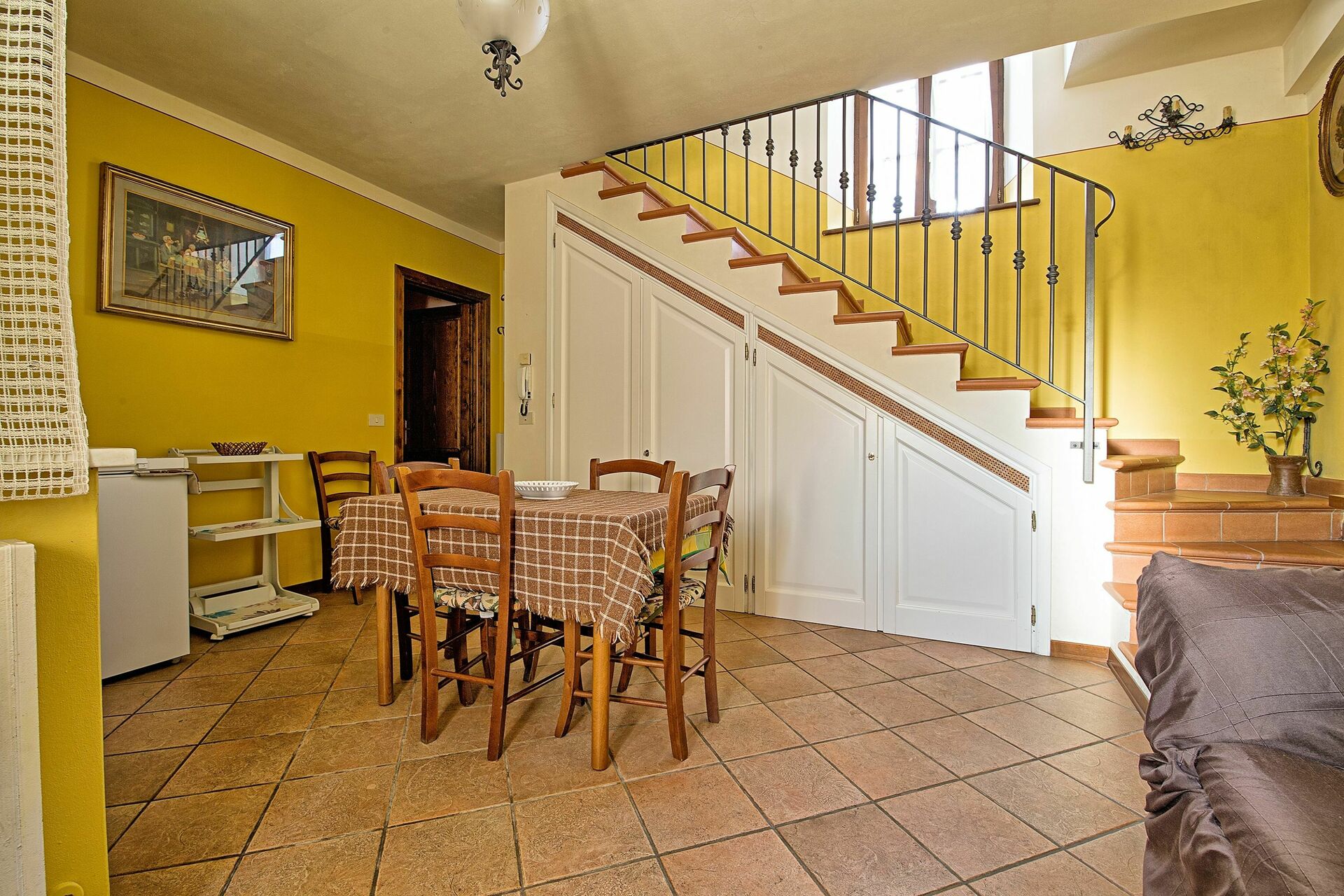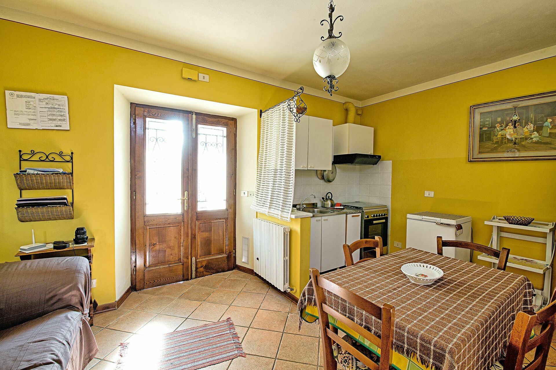 Piano terreno: ingresso , zona pranzo con cucina (frigorifero, forno elettrico, microonde, lavatrice), camera matrimoniale con bagno privato con doccia