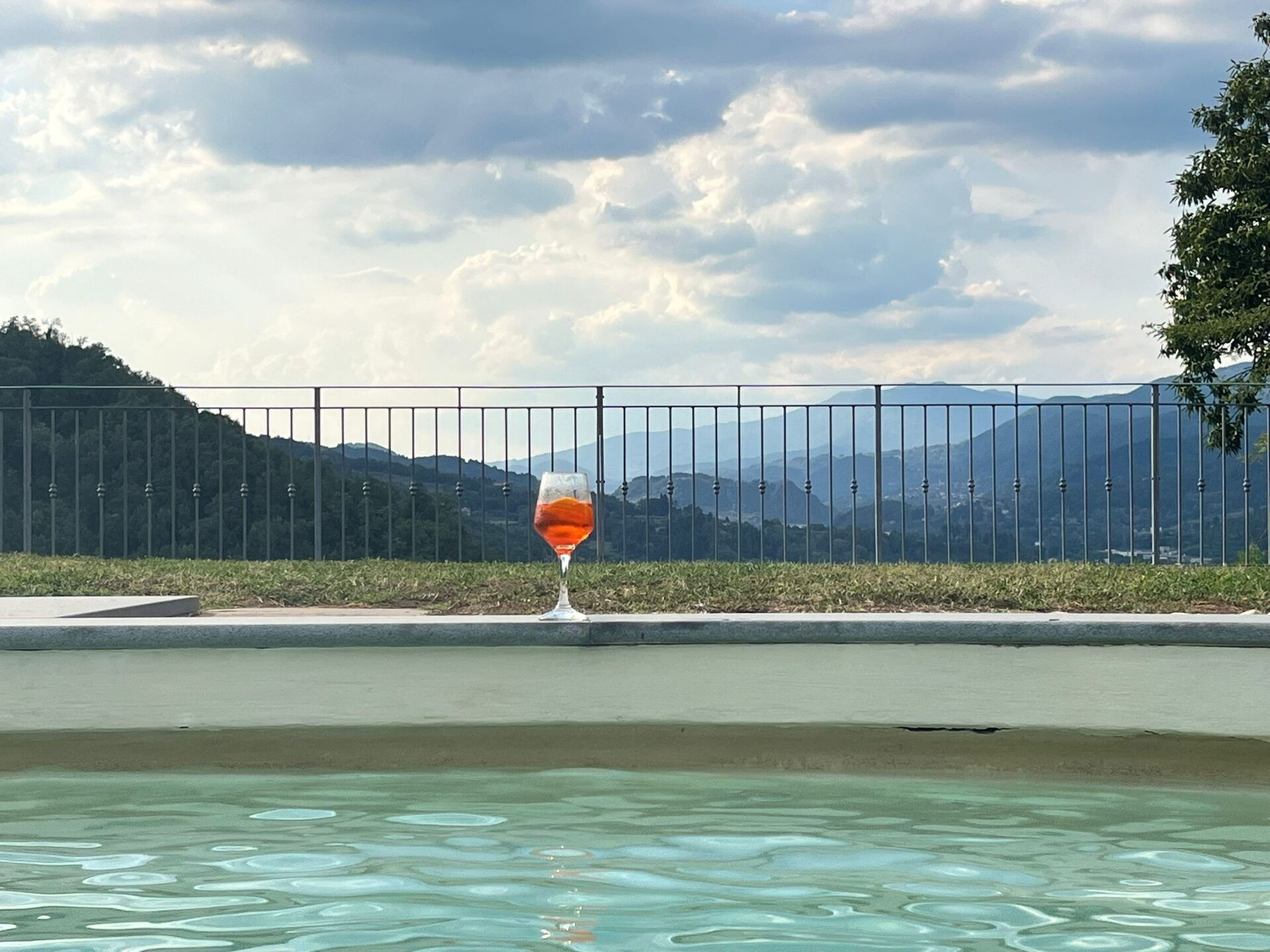 La piscina, da cui si può ammirare uno splendido panorama, è di dimensioni 14 x 6 m. con profondità costante di 1,50 m.+ zona idromassaggio di profondità 90 cm. circa. E' dotata di n. 4 postazioni idromassaggio, ed è attrezzata con ombrelli, sedie e lettini prendisole.
