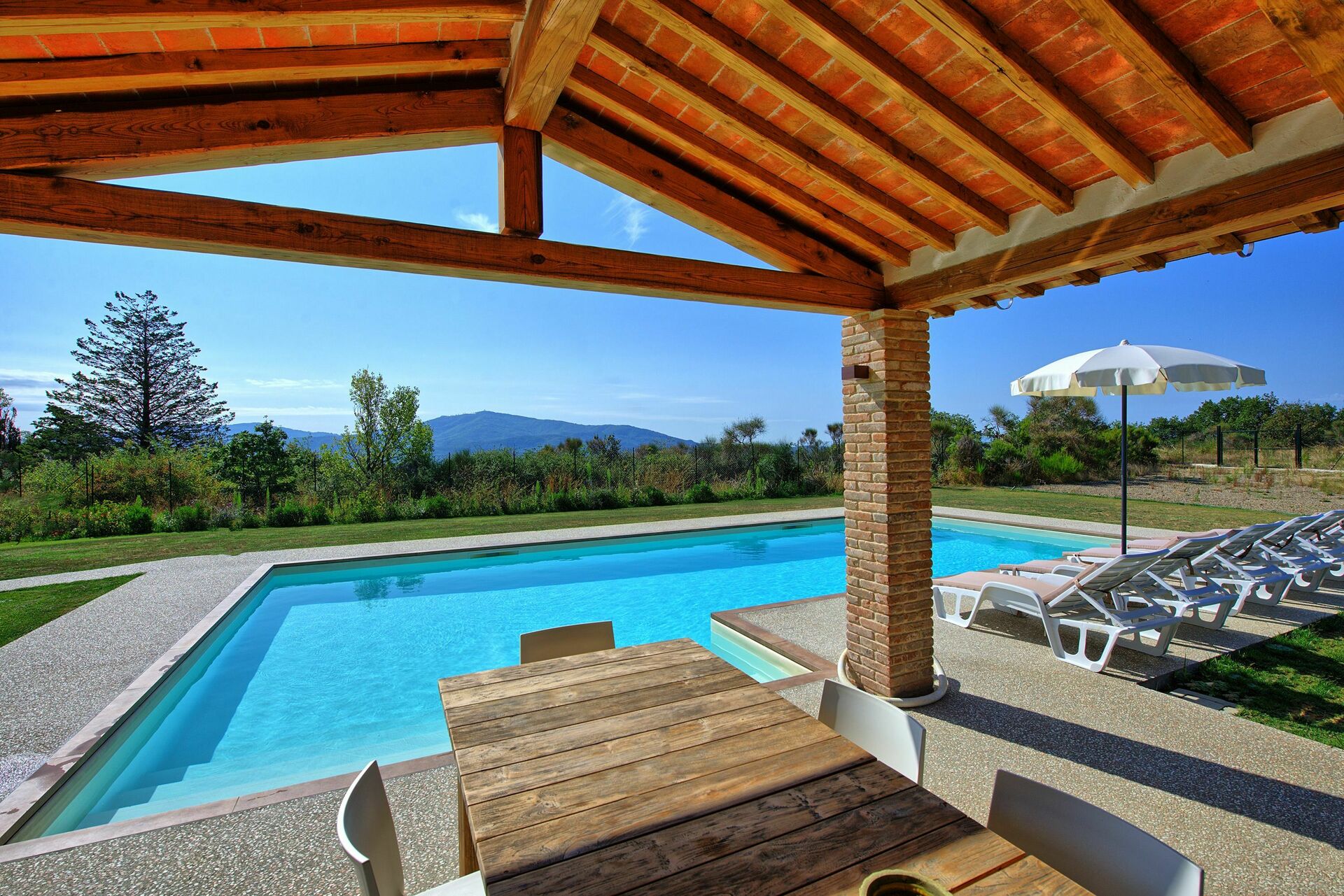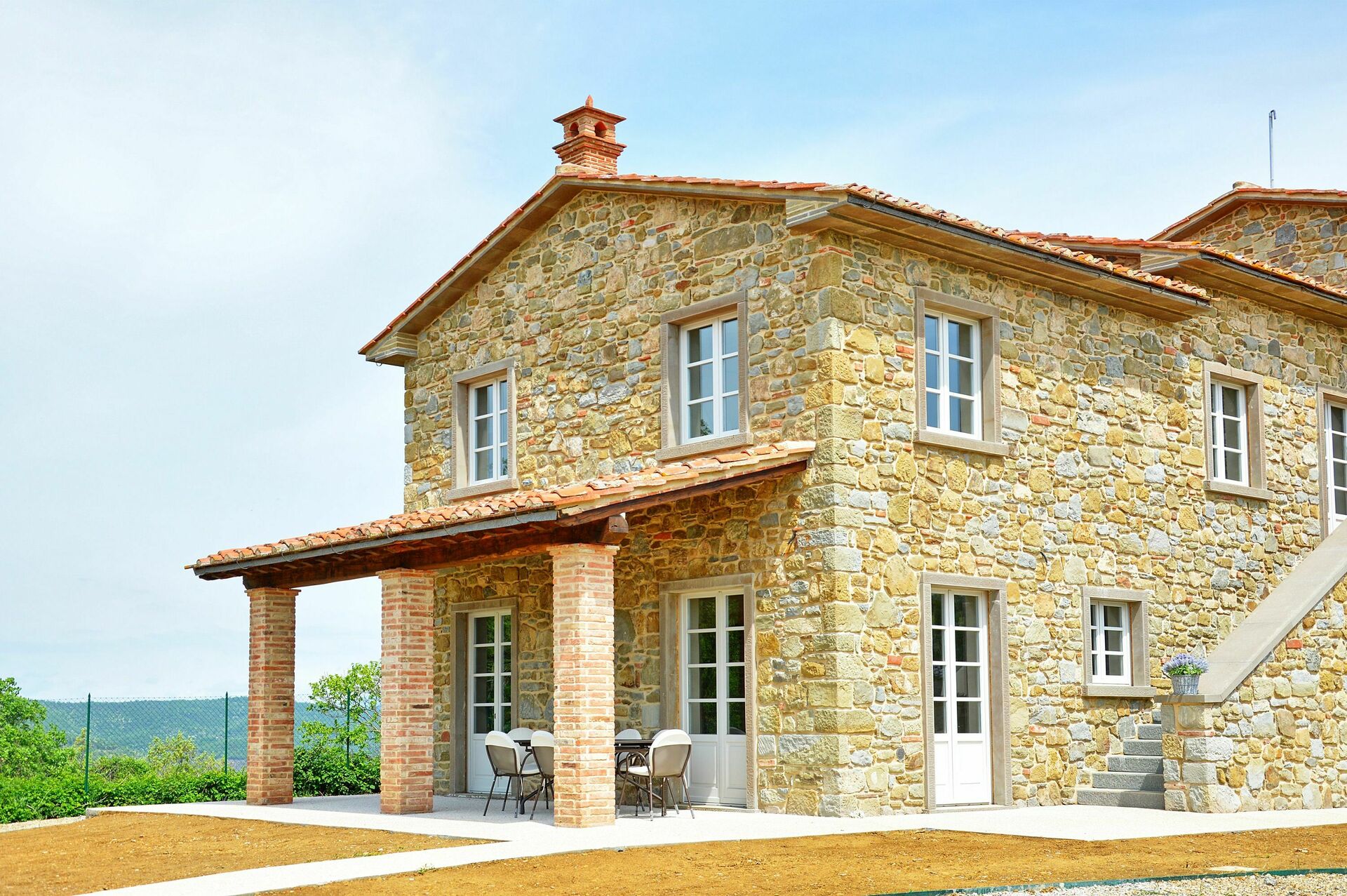 Bellissima villa in affitto con piscina privata in Toscana vicino a Castiglion Fiorentino, tra le storiche città di Cortona e Arezzo. La proprietà è stata finita di costruire nel 2018 e presenta un arredamento molto confortevole e dei bellissimi spazi esterni.