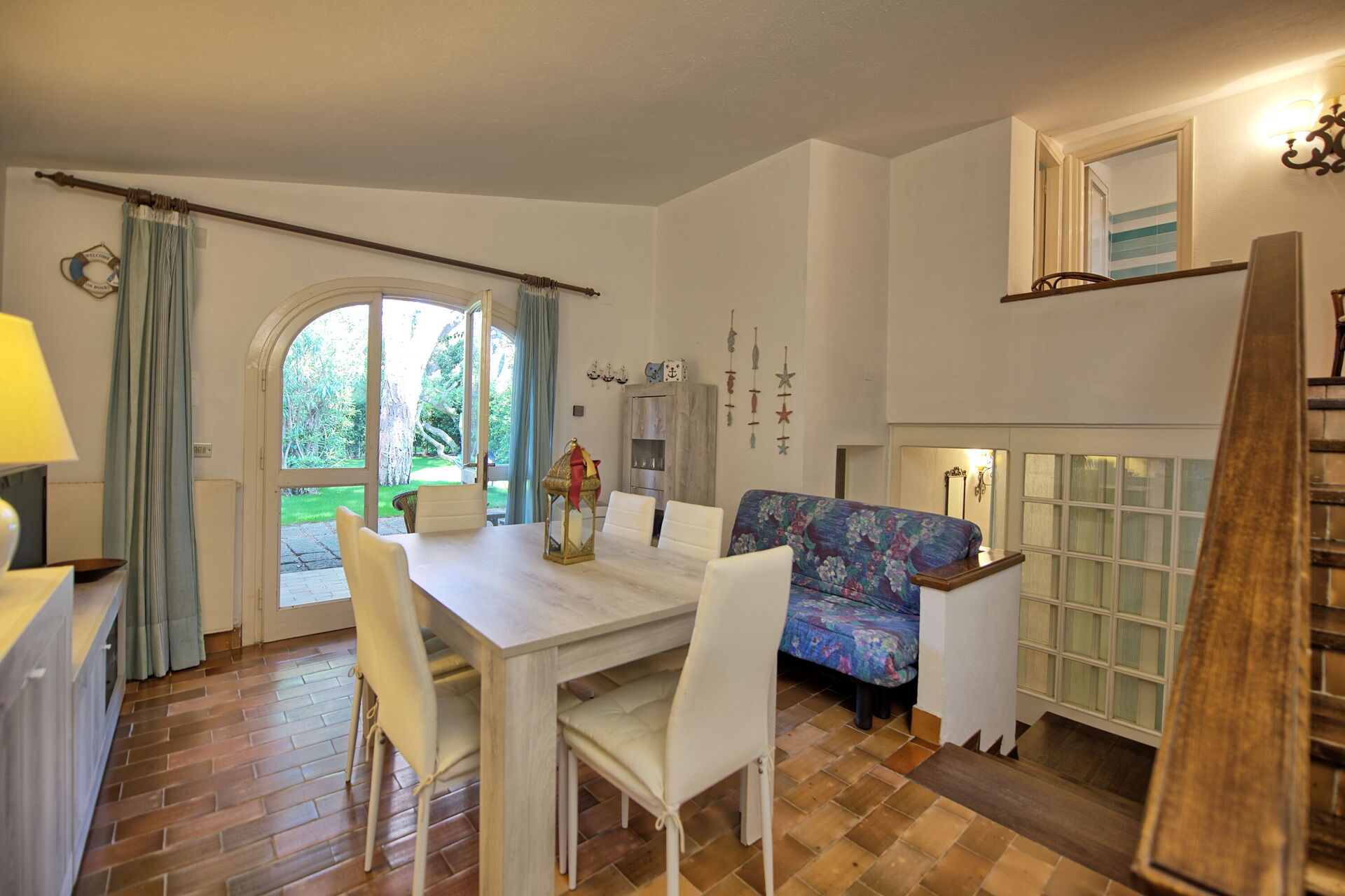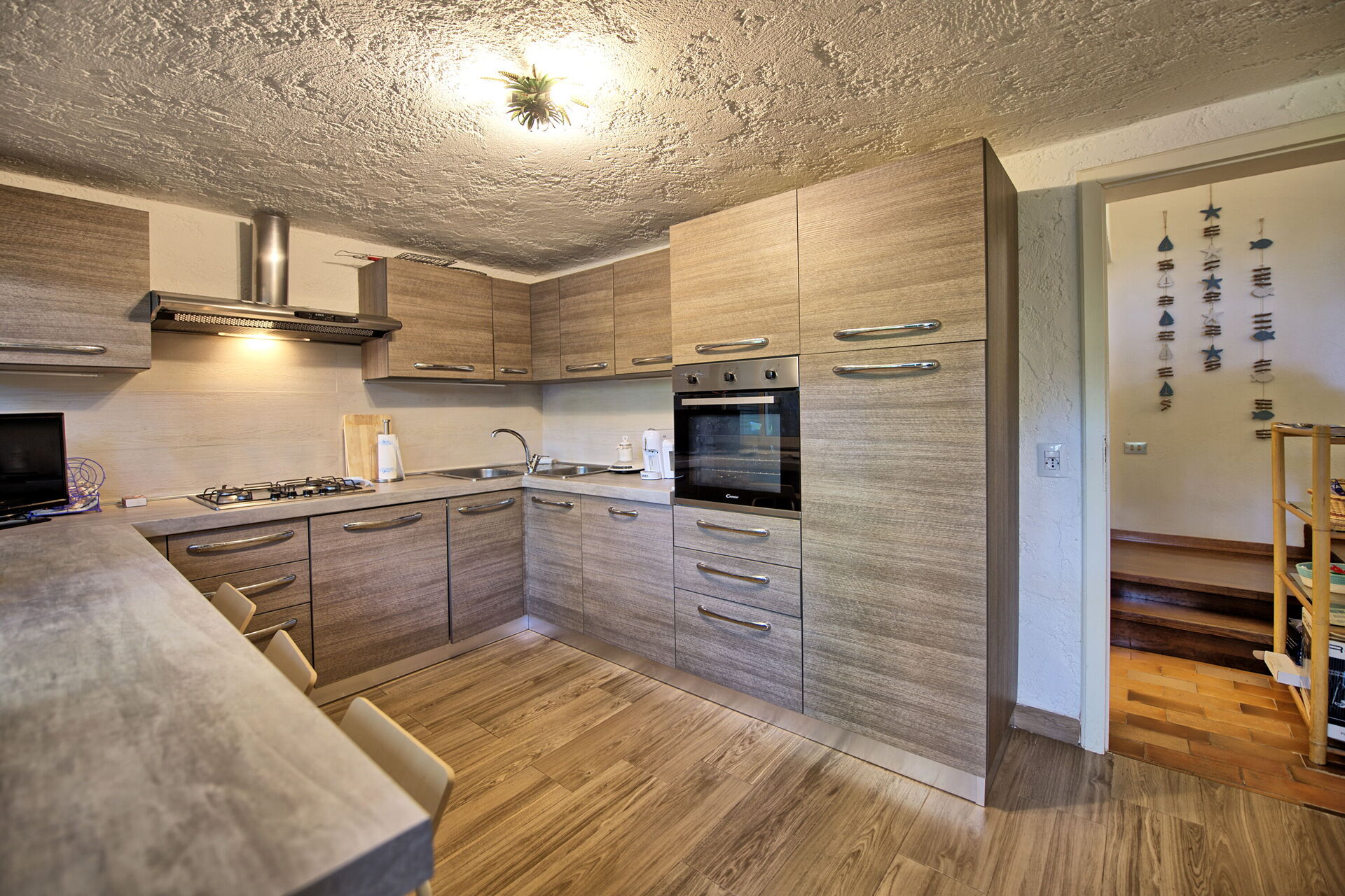 3 gradini sotto cucina (piano cottura, frigo, forno, lavastoviglie) con accesso al giardino ( salendo 3 gradini)