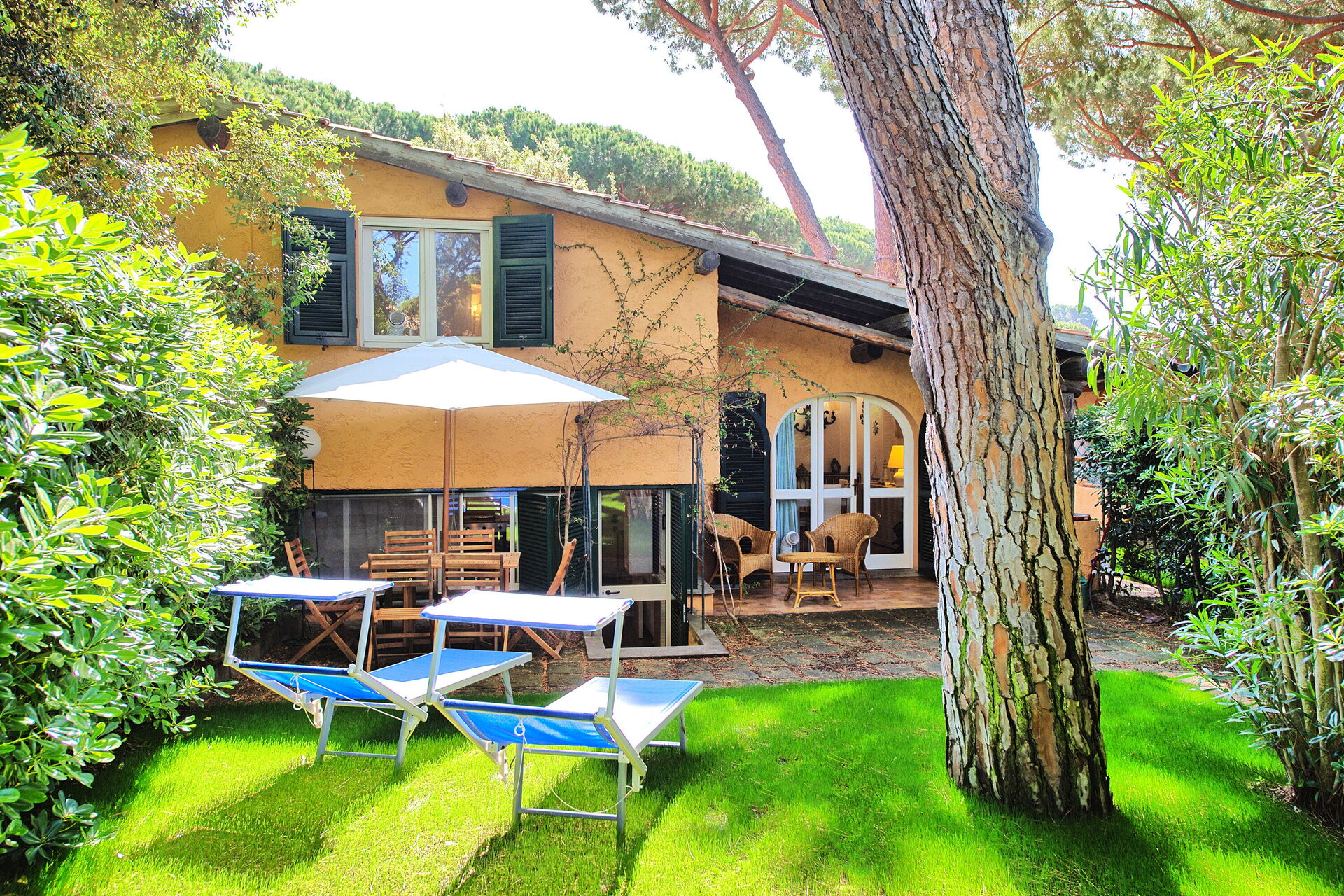 Das Haus inkl. Küche ist sehr gut ausgestattet und liegt inmitten eines Pinienwaldes in Strandnähe. Eigener Privatstrand mit Schirm und Liege. Der Besitzer war sehr hilfreich mit der Empfehlung von Lokalen. Der Strand ist wunderbar und in der danebenliegenden Strandbar (Pinetina) ist man bestens und freundlich bedient. Im Garten hört man ein wenig den Verkehr von der Landesstraße, ist aber nicht wirklich störend.