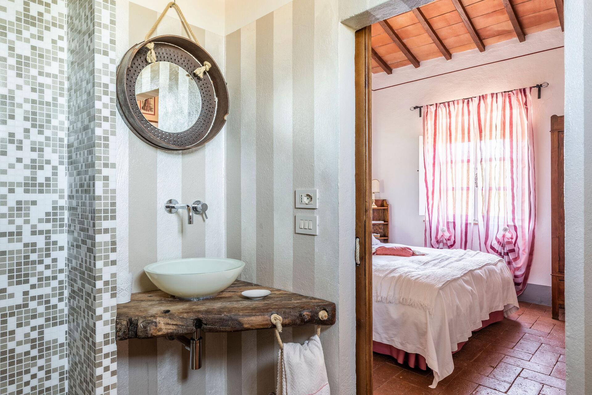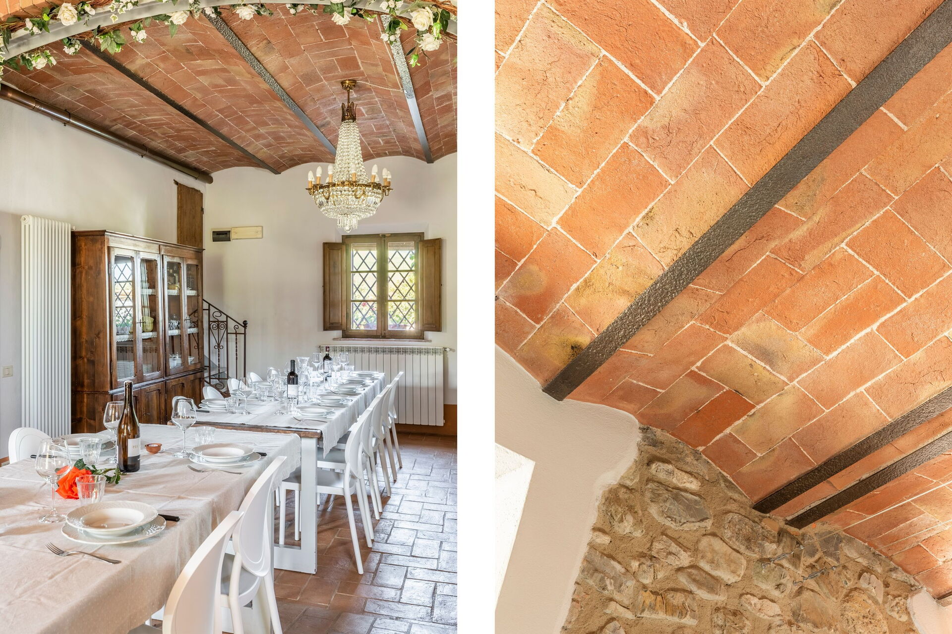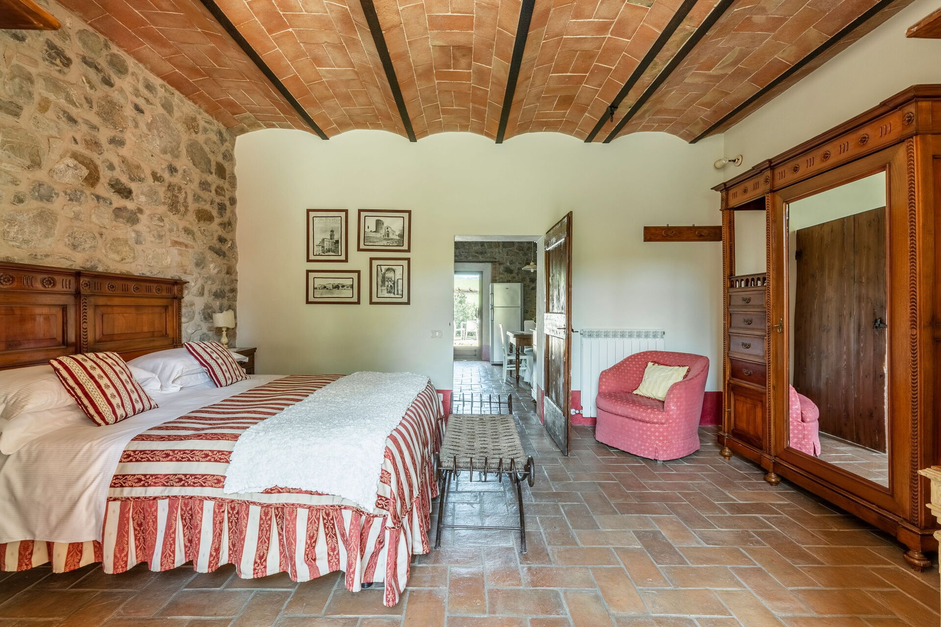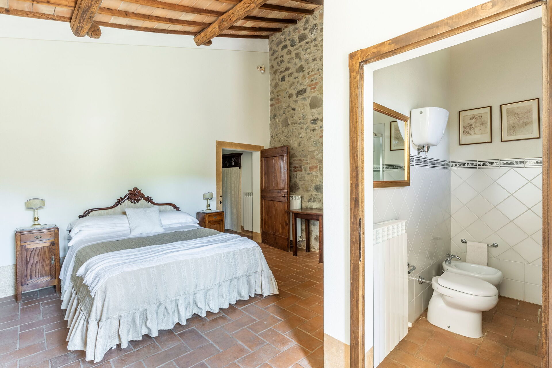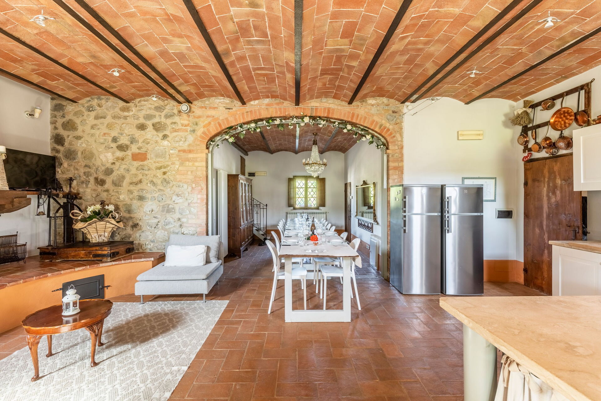 La villa è stata recentemente ristrutturata e presenta interni arredati con gusto nel tipico stile rustico delle case di campagna della Toscana. Gli ambienti sono dotati di ogni comfort per garantire il massimo della praticità e della tranquillità a chi vi soggiorna. Sviluppato su più piani, il casale può comodamente ospitare fino a 15 persone grazie alle sue 5 camere da letto e alle sue zone comuni ampie e spaziose.