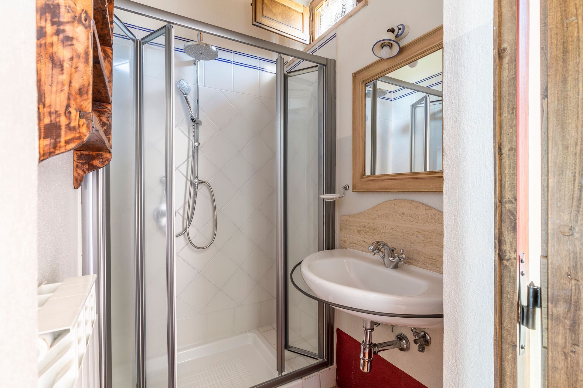 Primo piano: soggiorno, camera matrimoniale con bagno privato con doccia, camera matrimoniale e 1 letto singolo (situato su soppalco), bagno privato con doccia e vasca in camera.