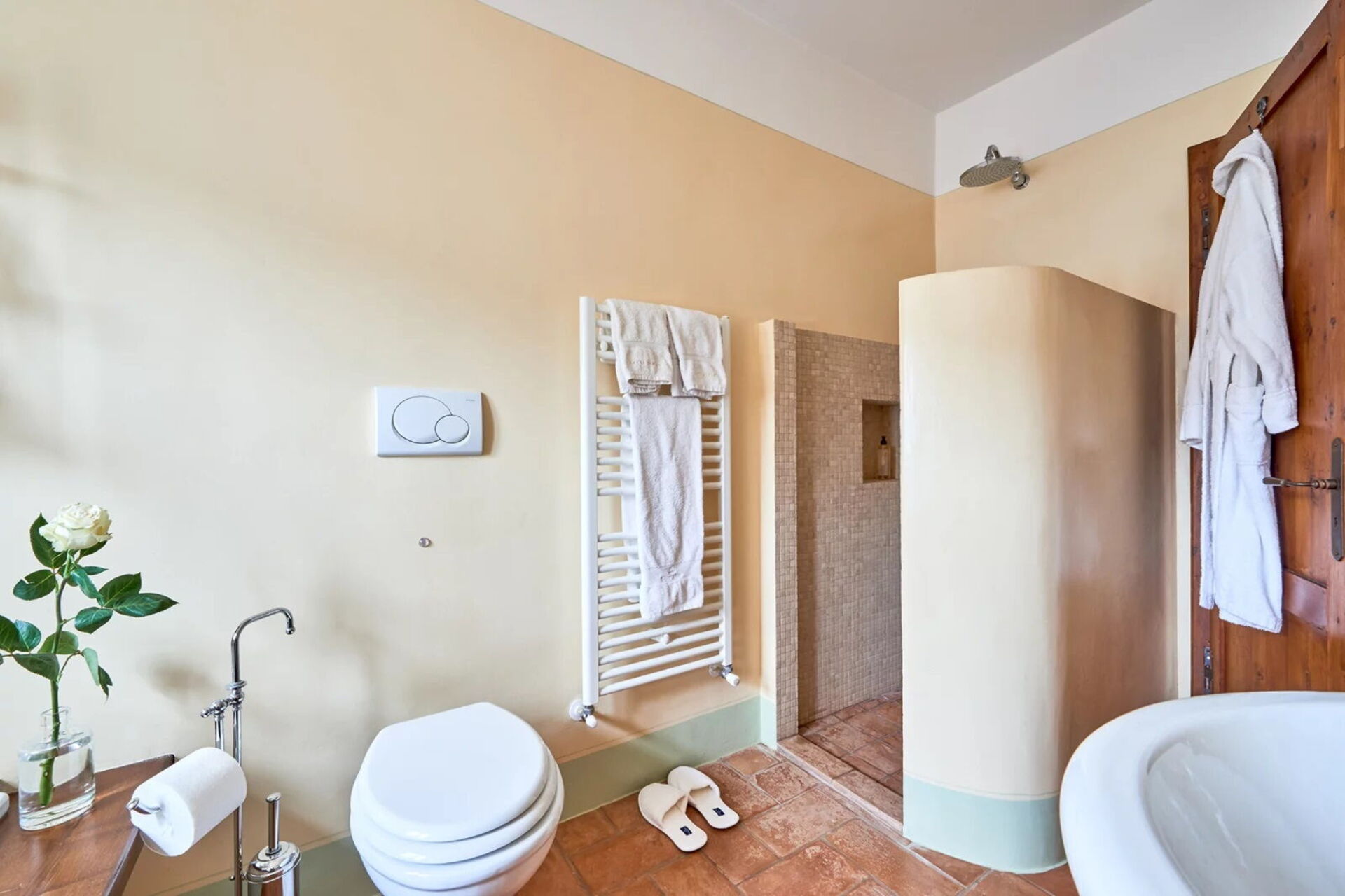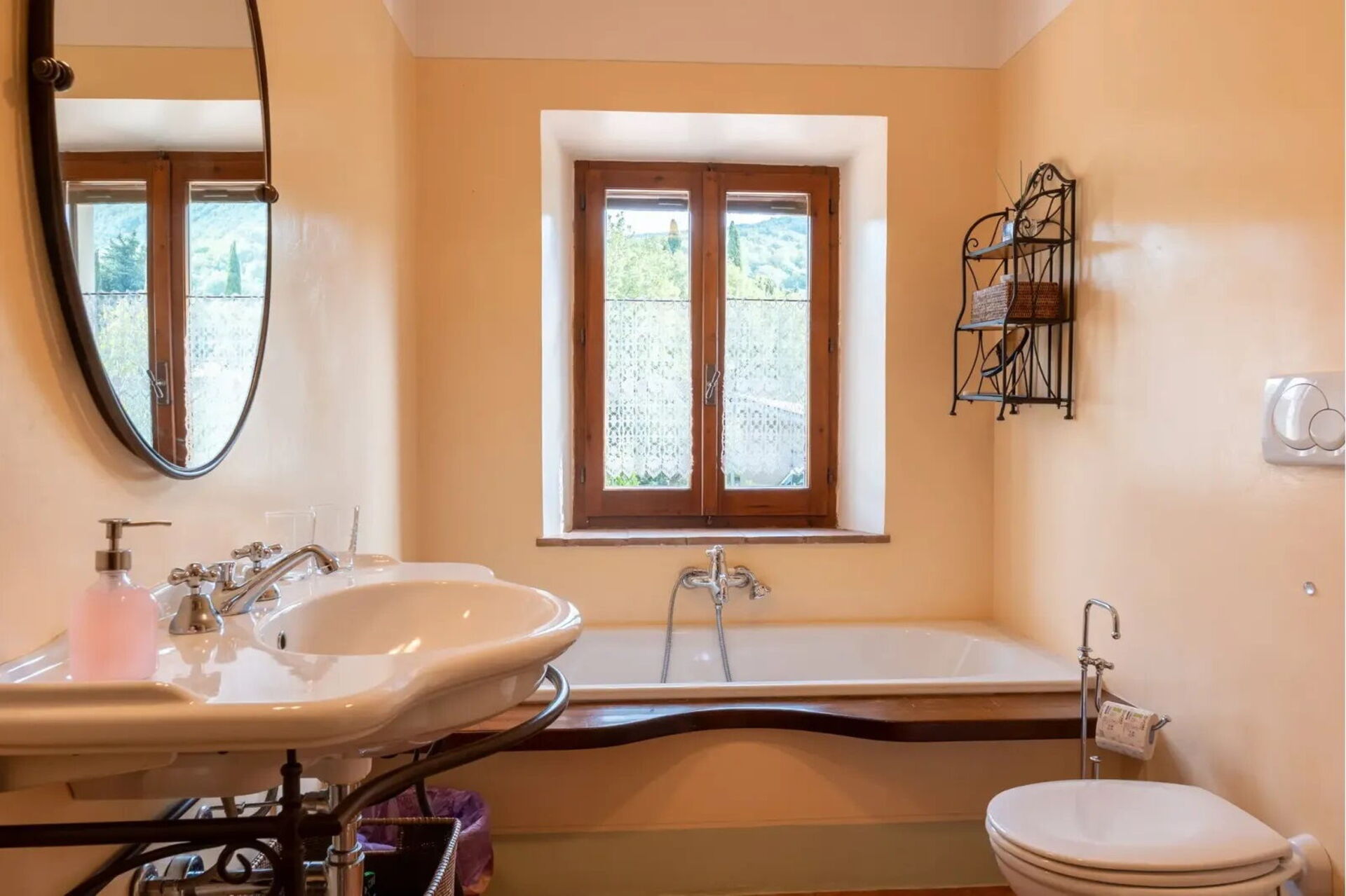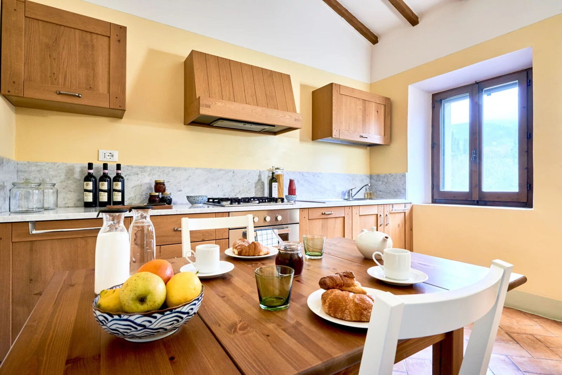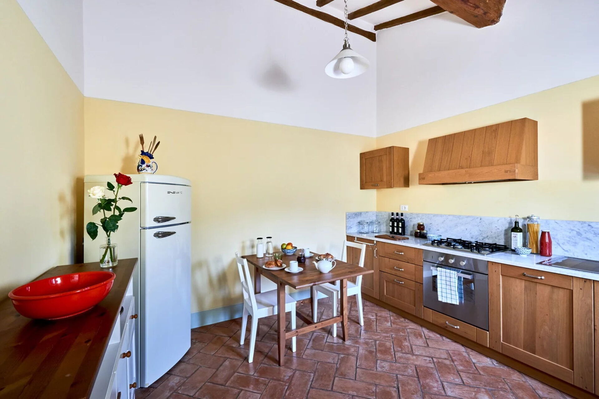 Gli ampi spazi interni della villa sono dotati di ogni comfort e sono stati arredati con gusto; a Podere i Prati è stato lasciato intatto il tipico stile delle case di campagna in Toscana.