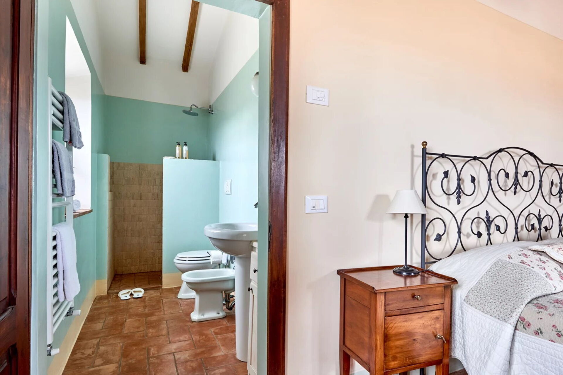 La proprietà è un antico casale che fa parte di un complesso colonico risalente al XVI secolo accuratamente ristrutturato e immerso tra gli uliveti sulle dolci colline della Val d'Orcia, in Toscana.
