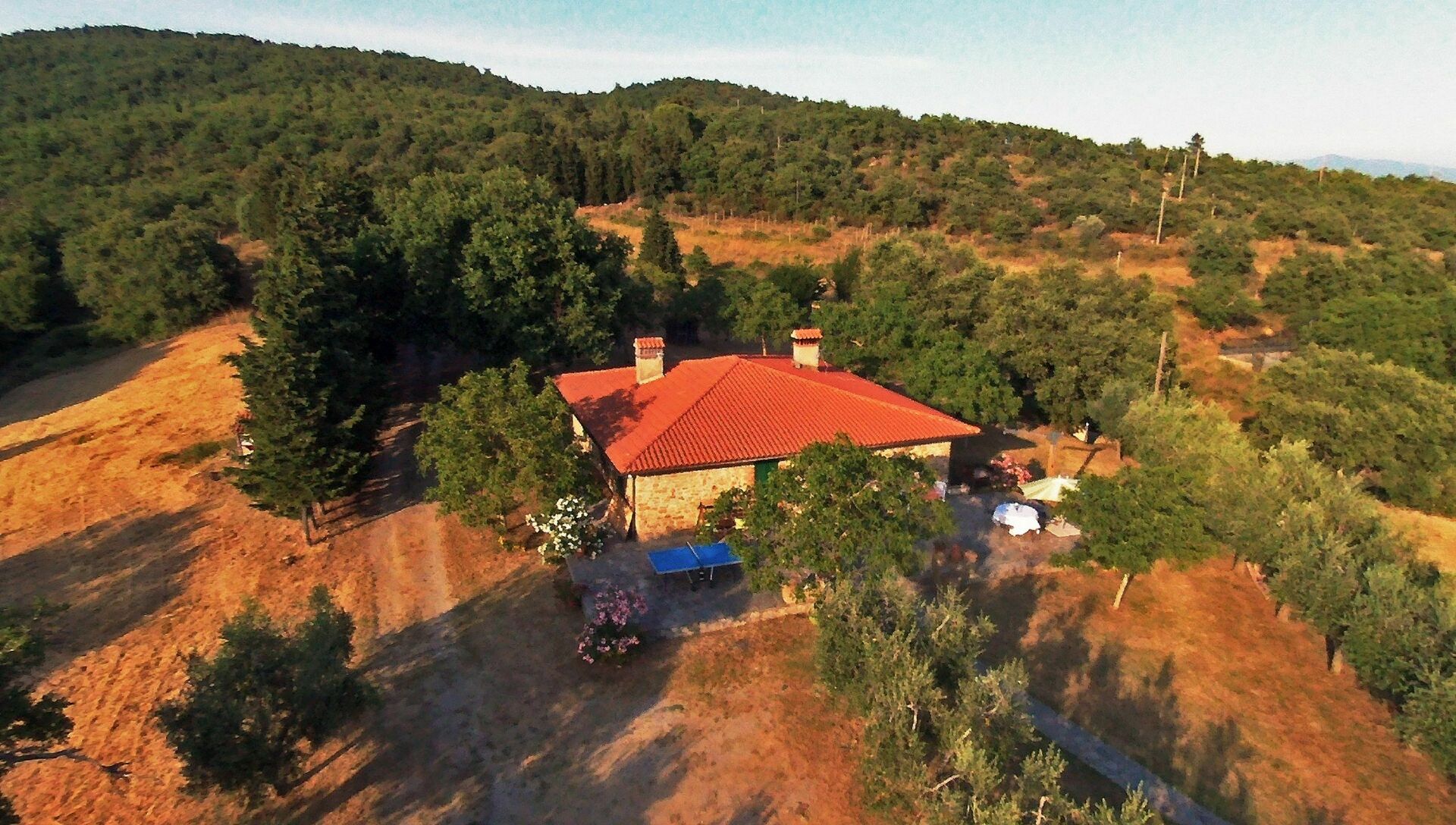 Circondata da ettari di boschi, questa proprietà offre la massima privacy e permette di trascorrere una piacevole vacanza a contatto con la natura.