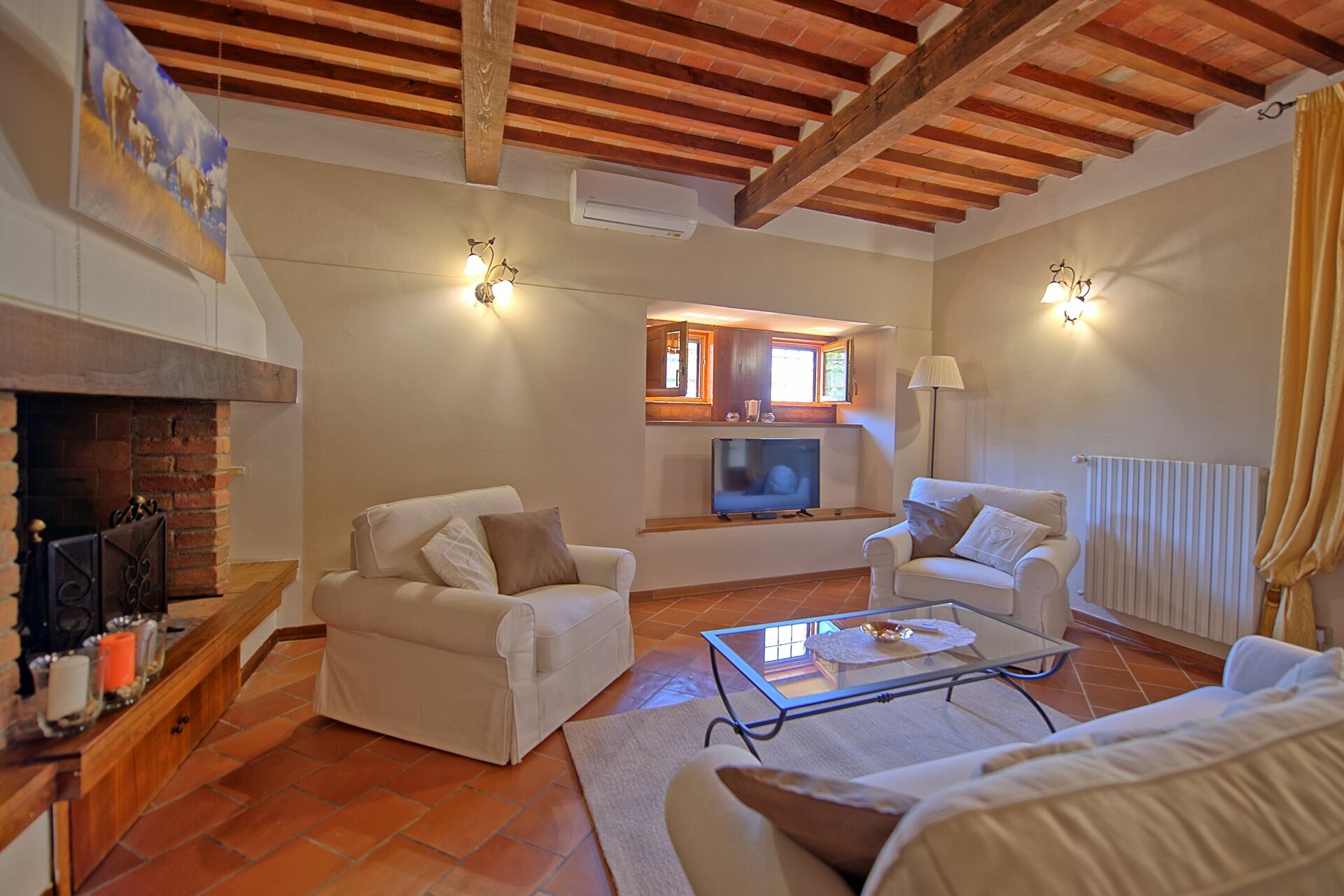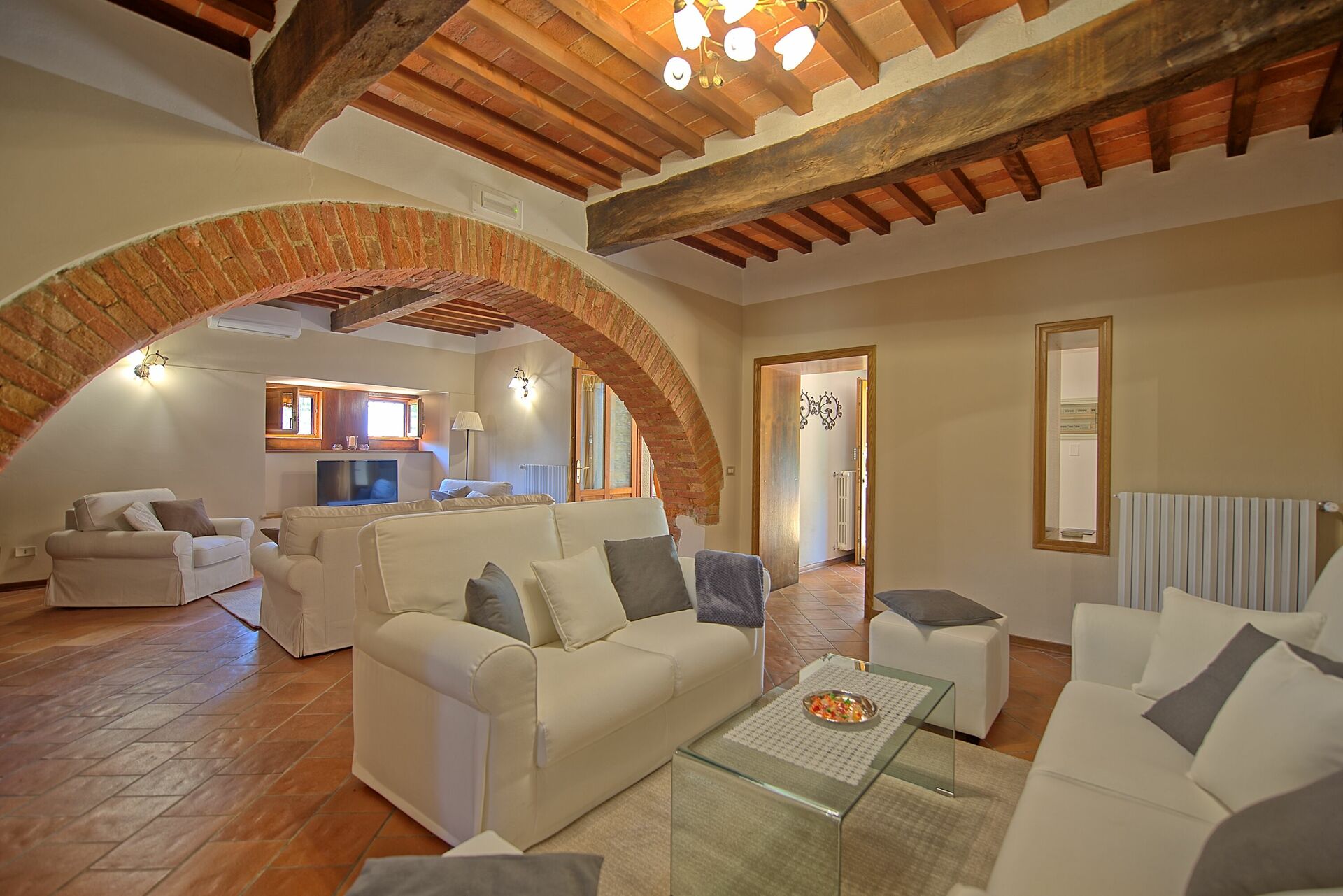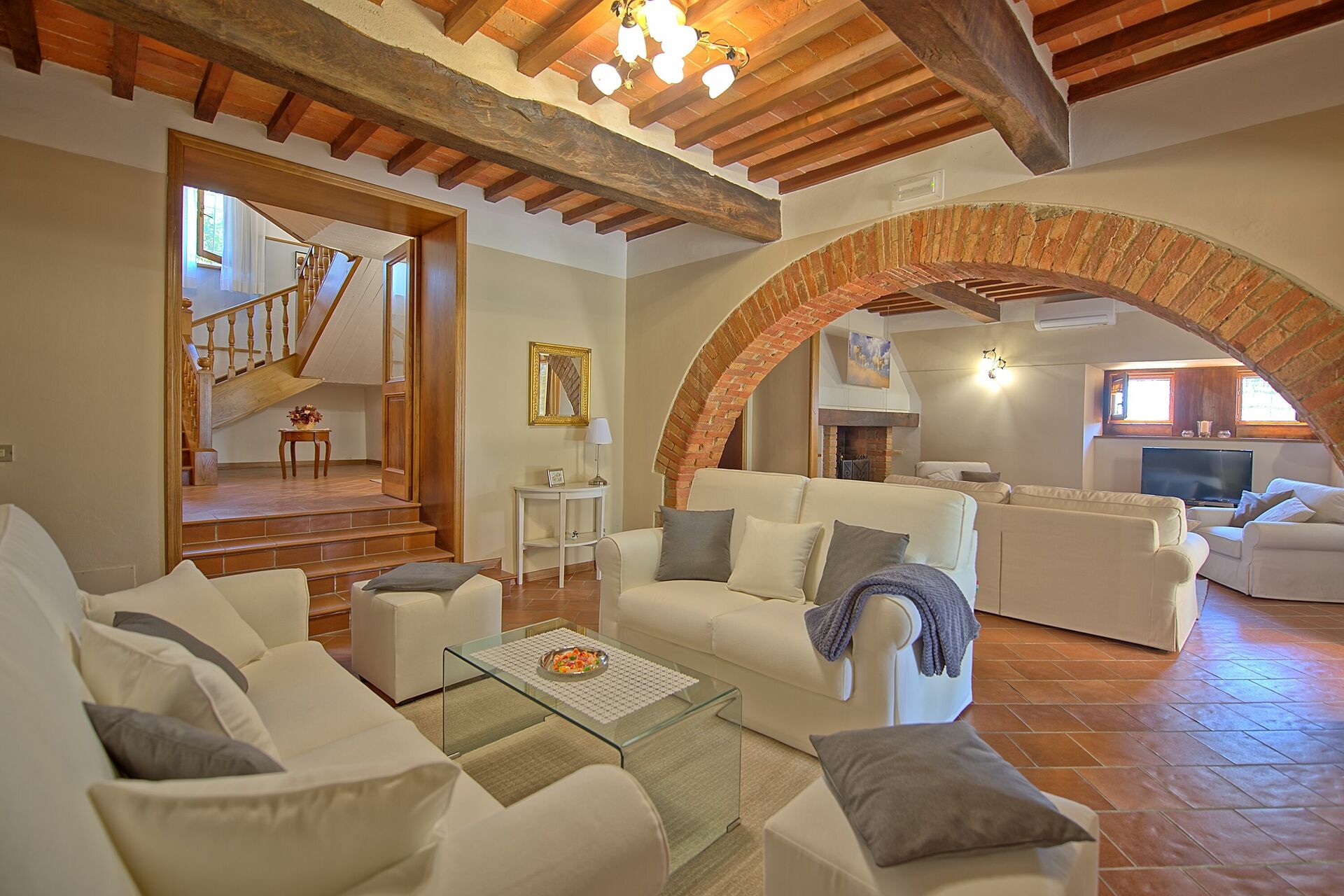 La villa, recentemente ristrutturata, ha mantenuto inalterate le caratteristiche originali come pavimenti in cotto, le travi a vista, archi in mattoni ecc...