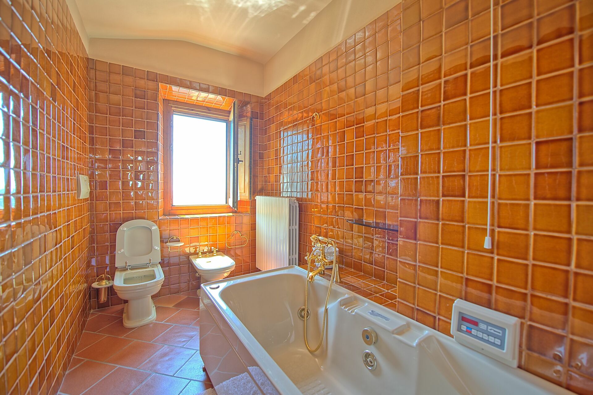 4 gradini più in alto (dalla sala): camera (aria condizionata) con 2 letti singoli (unibili su richiesta), bagno con vasca.