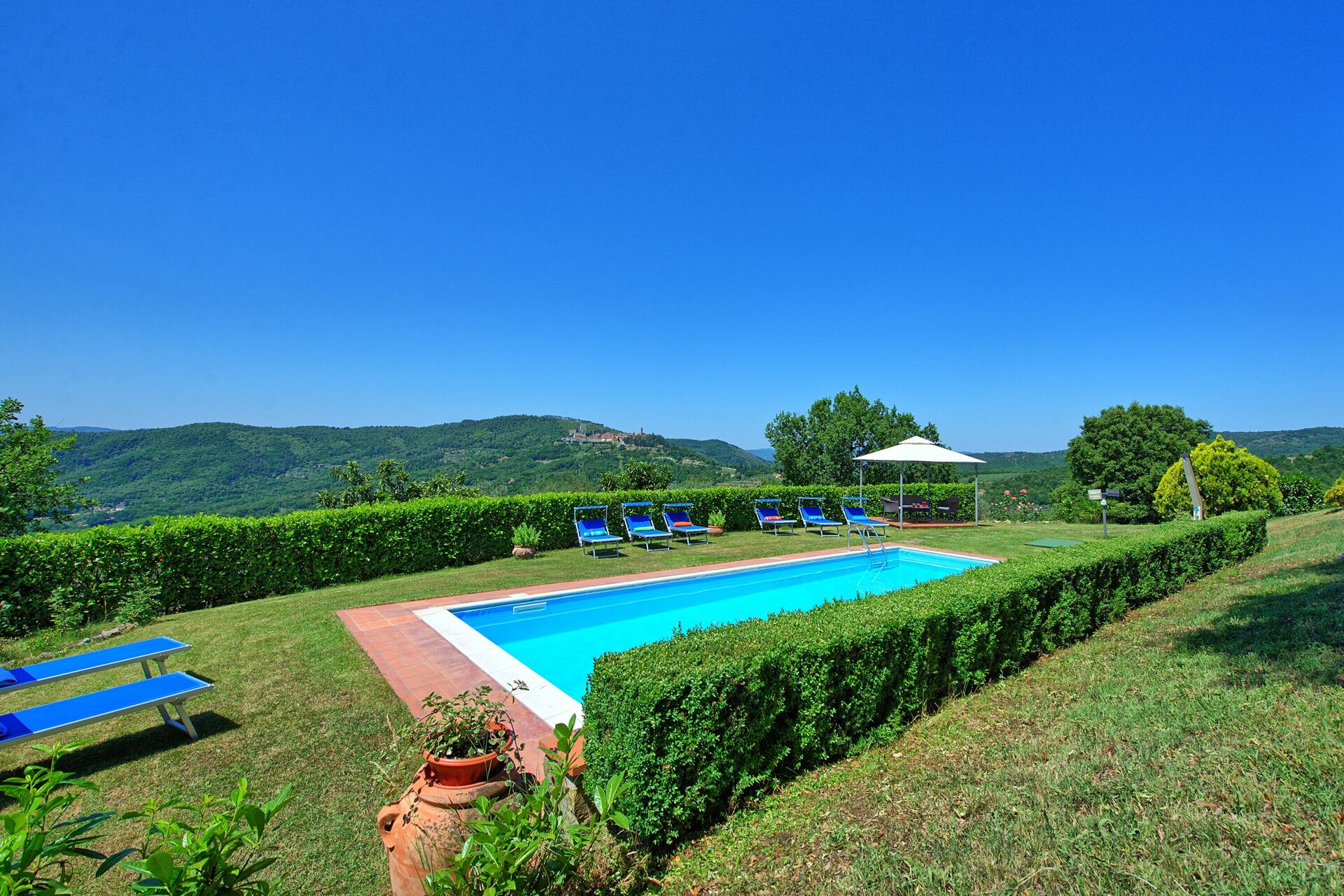 Panoramica villa indipendente con piscina privata situata in posizione dominante sopra la Val di Chiana, a pochi chilometri dalla cittadina di Civitella.