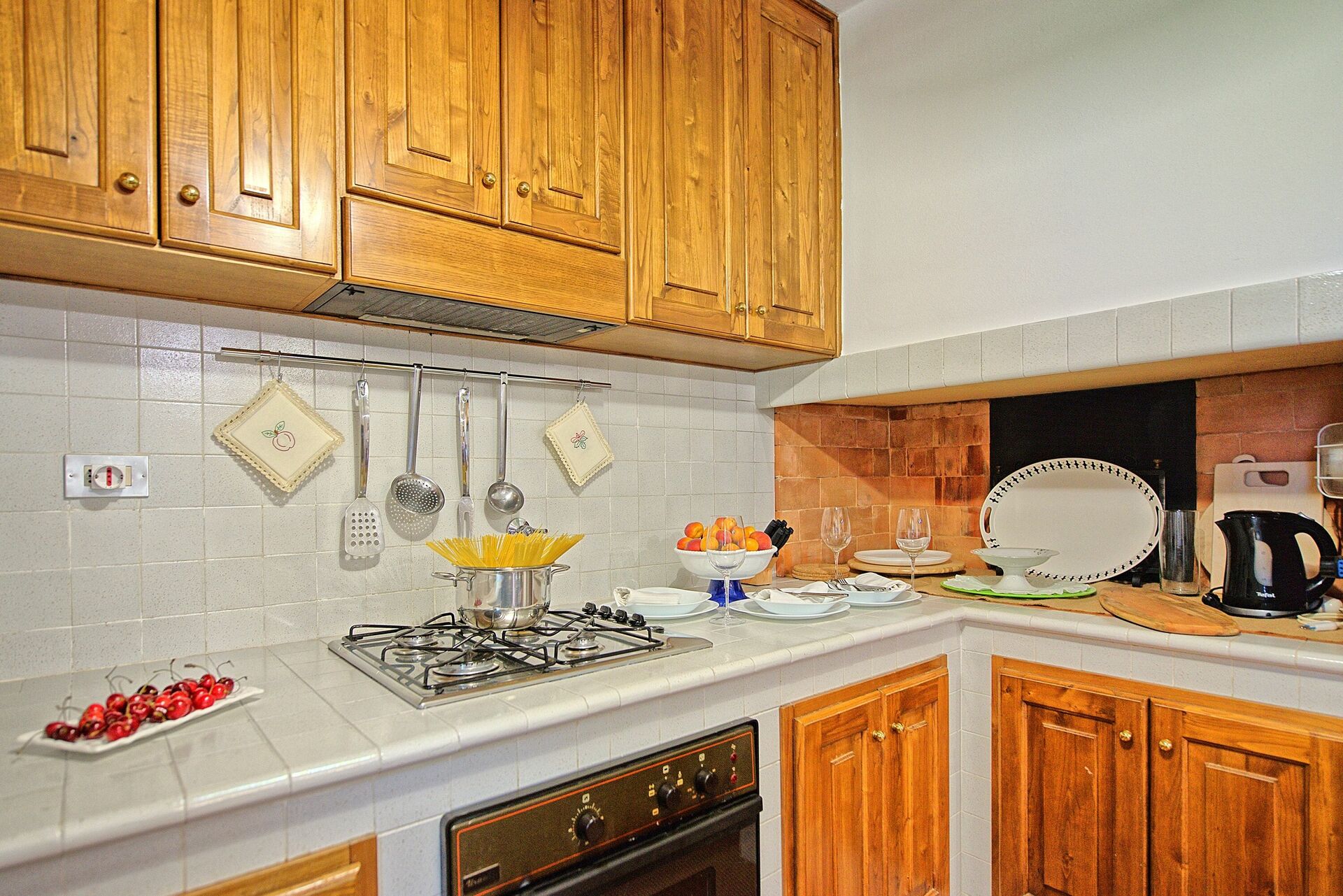 Unfortunately, the kitchen equipment is rather spartan, maybe not enough if 9 people, especially wine glasses and water glasses just 7 or 9 each. However, lots of plates and cutlery (knives, spoons, forks etc.).