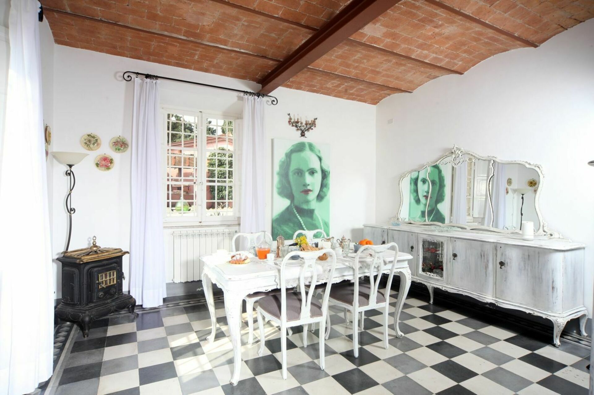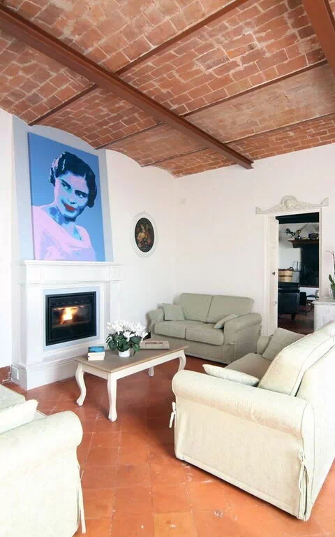 Piano terreno: soggiorno con camino, soggiorno con stufa a pellet (su richiesta e con costo in base al consumo) , grande sala da pranzo che può ospitare fino a 24 persone, seconda sala da pranzo per 8 persone, cucina (4 fuochi, forno, microonde, bollitore, macchina da caffè, freezer, lavastoviglie, WC.
