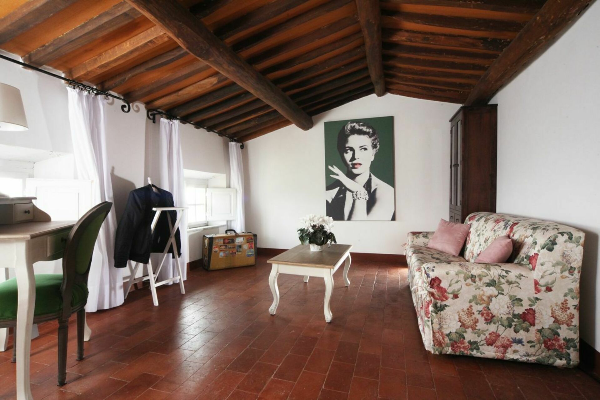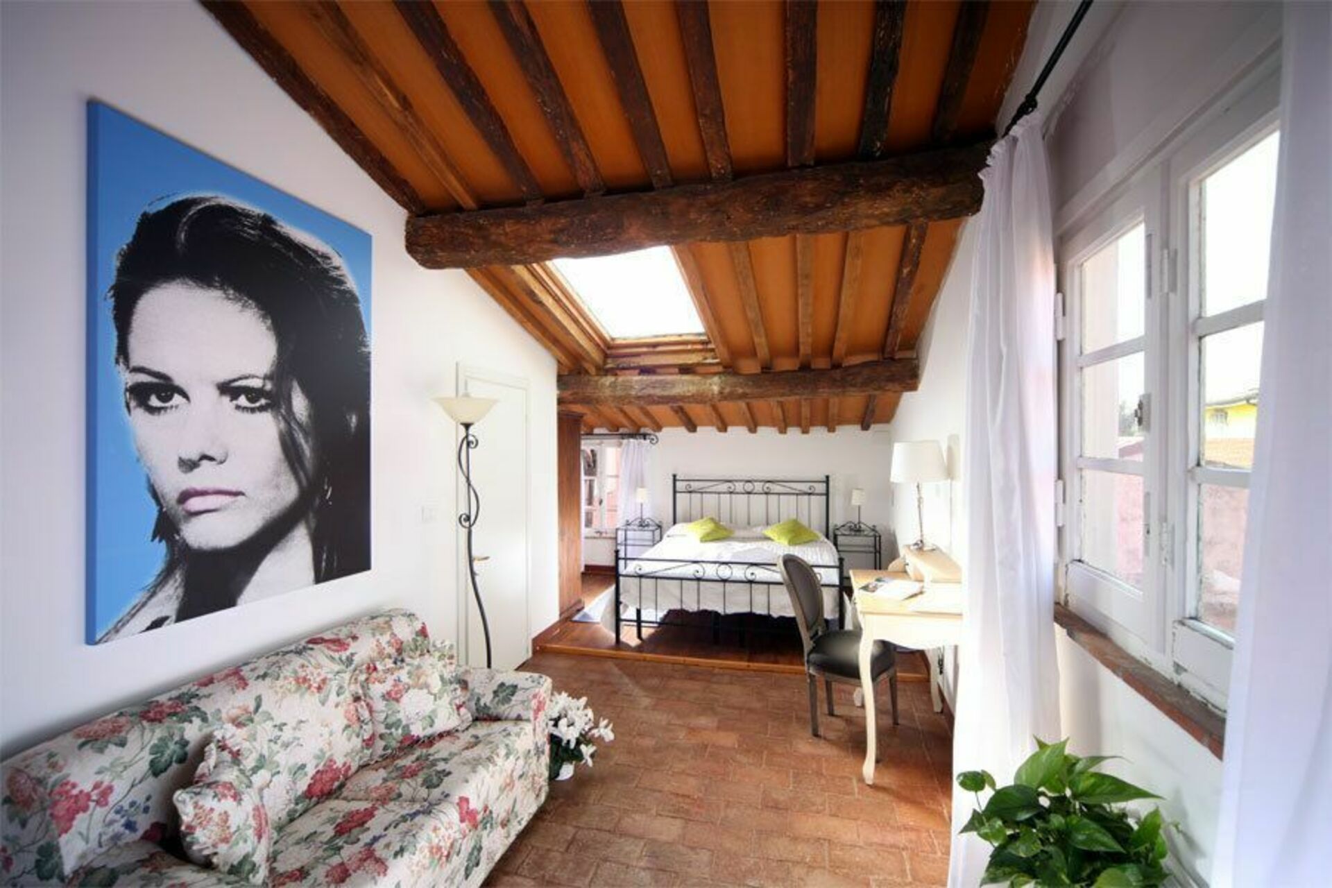Suite Claudia: camera matrimoniale, divano letto matrimoniale e bagno con doccia.