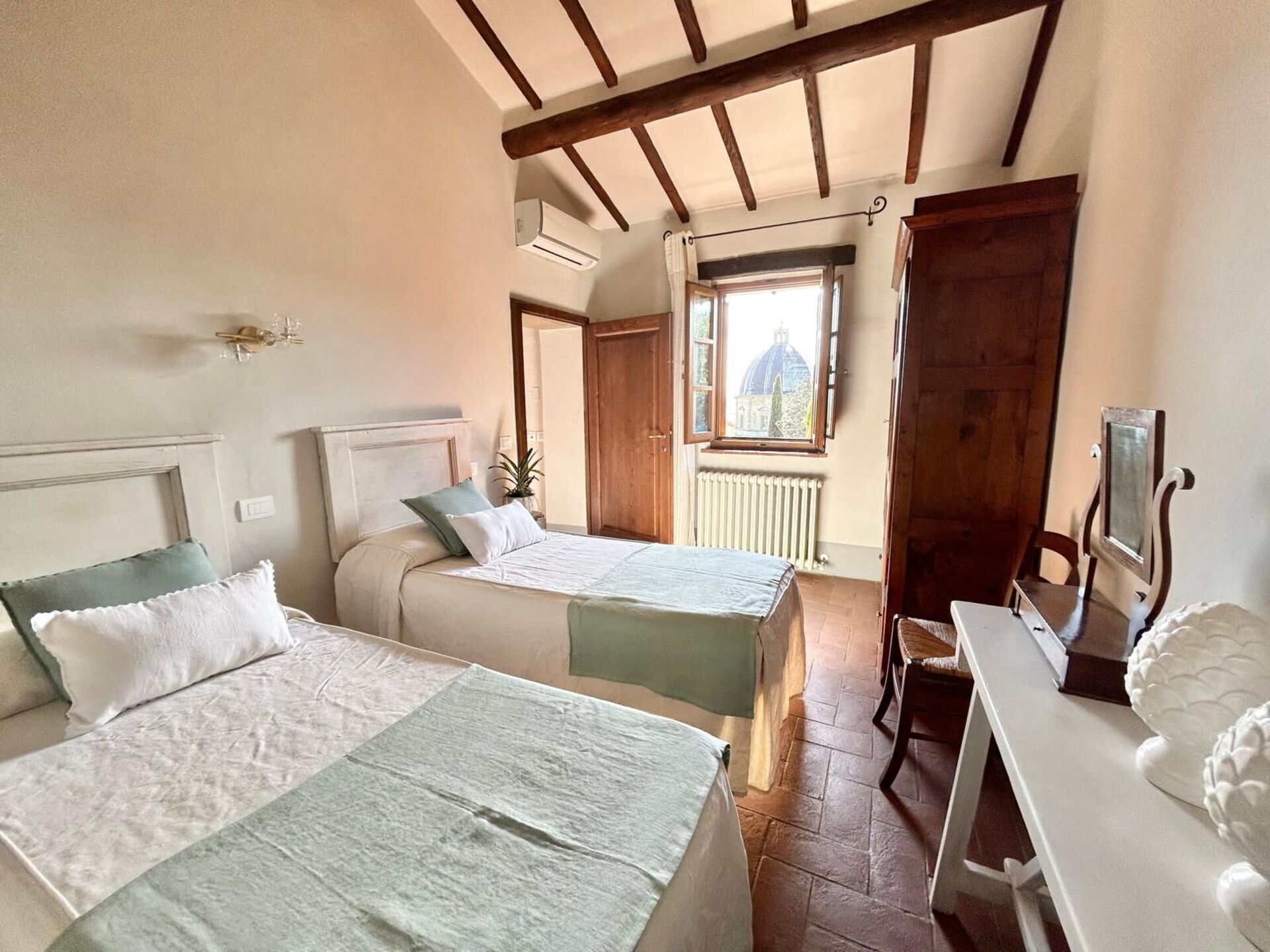 Villa Calcinaio was a beautiful place to spend our time while in Cortona. My goal was to get a slice of Tuscan life and this house gave me the opportunity to do just that. It was rustic but charming and updated ~20 years ago. Enrico was very responsive and even came to our rescue when we had trouble locating the house on the dark and rainy night when we arrived. I found the house stocked with all the basics and then some and I fell in love with the view of the beautiful dome from every window. My only word of caution is that the small road to the house is very steep, unpaved, and has poor visibility from both entrances to the main road. It was doable in a compact car, but I felt better having a co-pilot to help me check for oncoming cars when exiting. Again, something that Italians may be used to, but not so much for many others. Also, if being able to walk to town is what's drawing you to this space as it was for me, while it can be done, you are walking on very curvy and narrow roads, and even for someone in good shape, it is a heck of a steep incline. We chose to take the very short drive to the public parking lot up the hill and save our energy for the walks in Cortona.