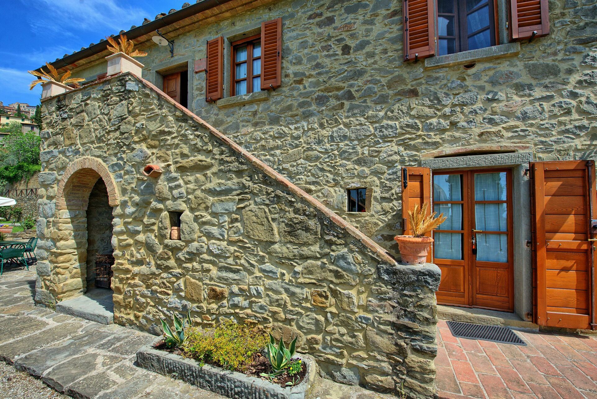 Antico Casale è una bella casa colonica in pietra situata vicino a Cortona, caratteristico borgo sulle colline della Toscana. Ubicata in posizione molto panoramica con splendida vista sulla Valdichiana e sull’antica chiesa di S. Maria delle Grazie al Calcinaio, questa splendida villa in affitto regalerà ai propri ospiti un'esperienza indimenticabile e all'insegna del relax.