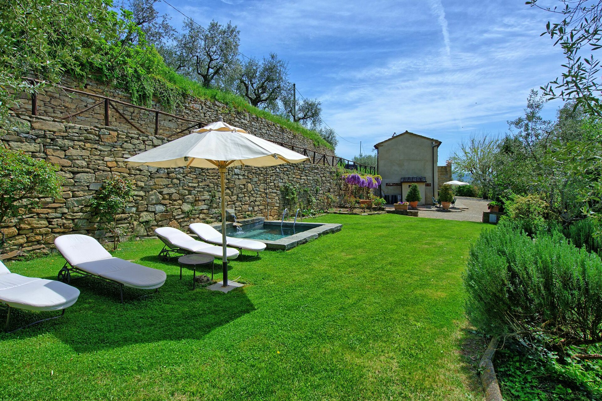 - piccola piscina in pietra (3,5 x 4 m - aperta dal 15/04 al 15/10) dotata di getti idromassaggio e cascata d'acqua corrente