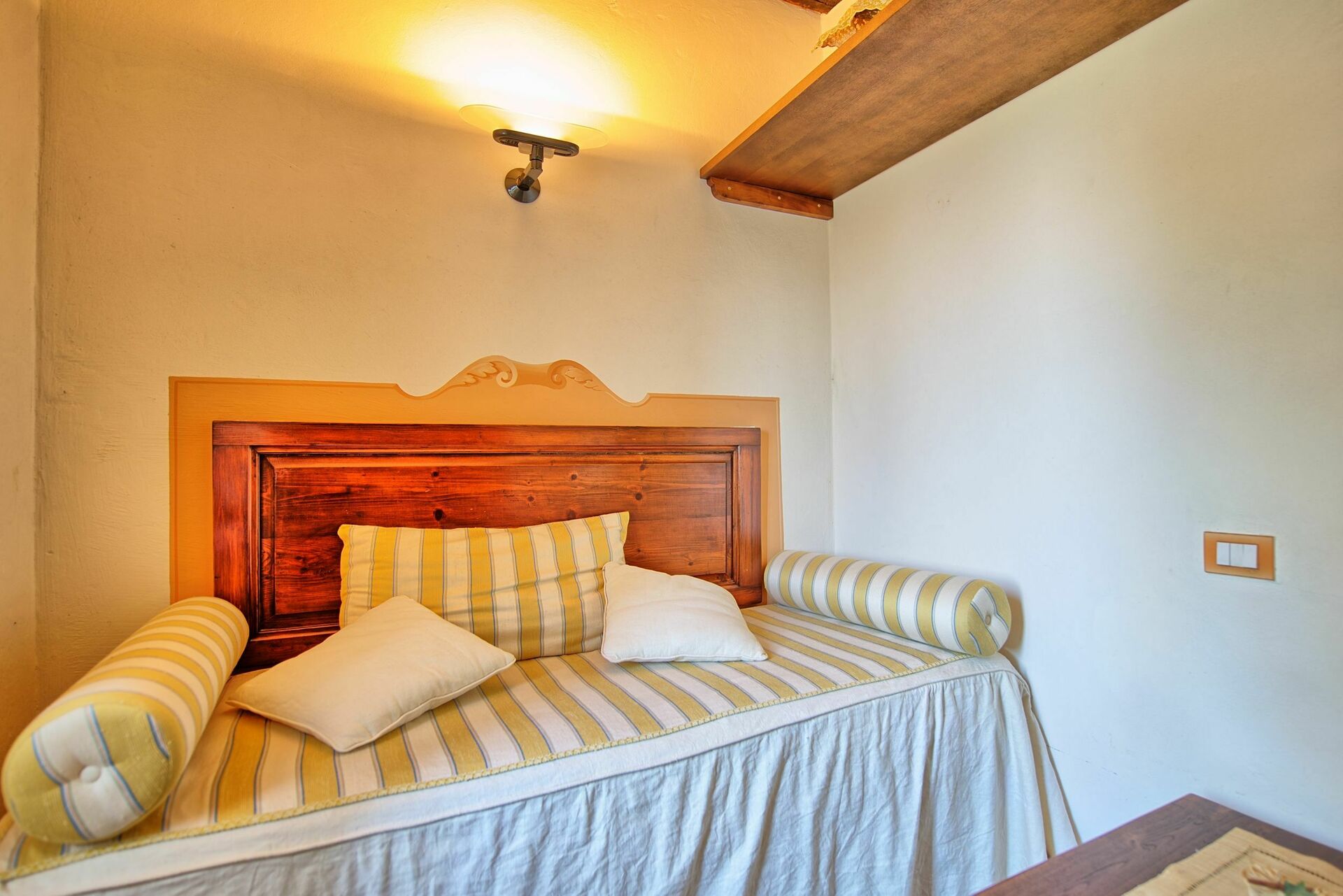 Primo piano (accesso anche tramite una scala esterna in pietra): camera matrimoniale (aria condizionata), camera con due letti singoli (aria condizionata), bagno con doccia.