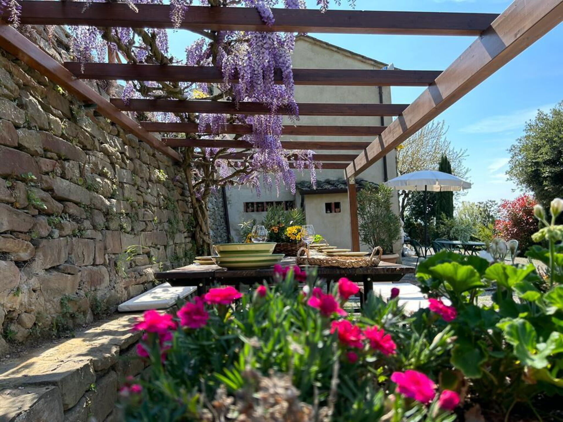 La posizione di questa bellissima villa in affitto è ideale per chi vuole raggiungere facilmente località di interesse artistico e culturale, come Arezzo, Cortona, Lucignano, Firenze, Siena, Montepulciano, così come il Lago Trasimeno e la vicina Umbria.