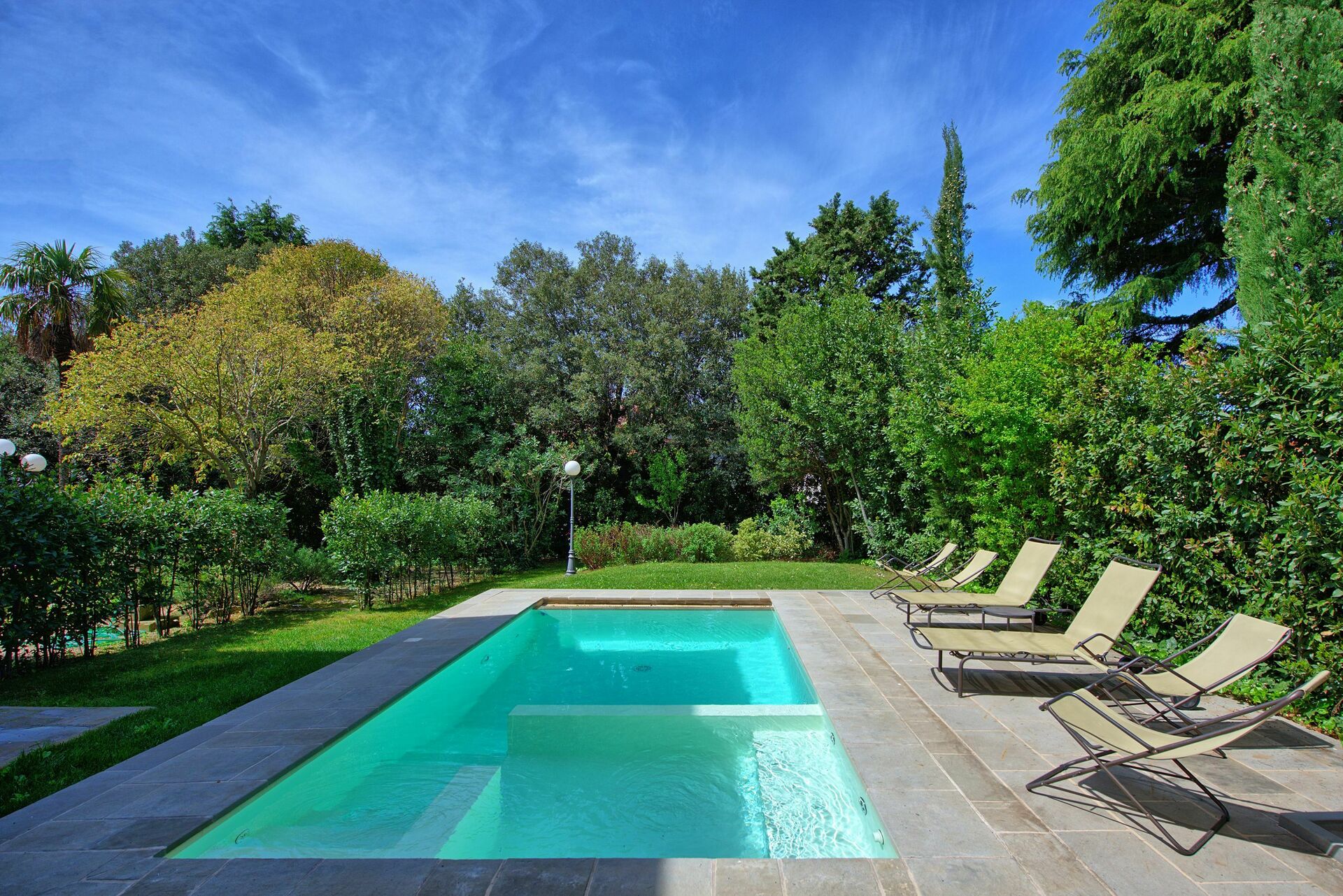 Clean and spacious. Close to station, cafes and supermarket, so no need for a car. Pool was great for children 9 and 12. Also plenty of garden furniture. Owner Enrico very helpful.