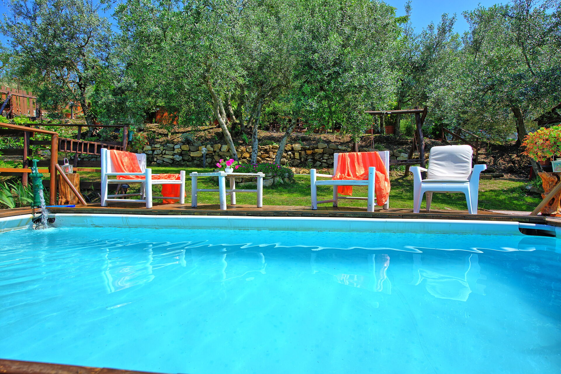 - giardino situato a circa 100 metri dalla casa e dotato di piscina fuori terra (5,5 x 3 metri; profondità: 1,30 metri); zona barbecue; zona con gazebo, tavolo e sedie