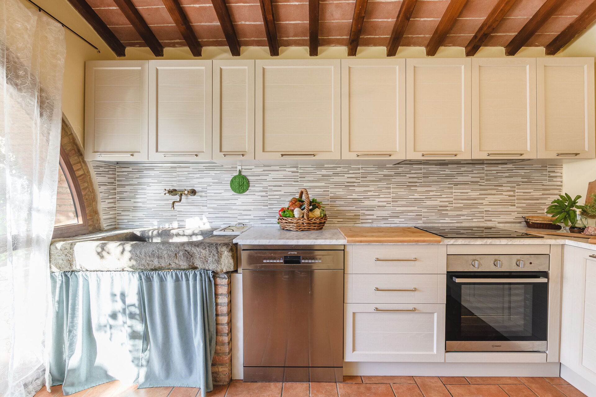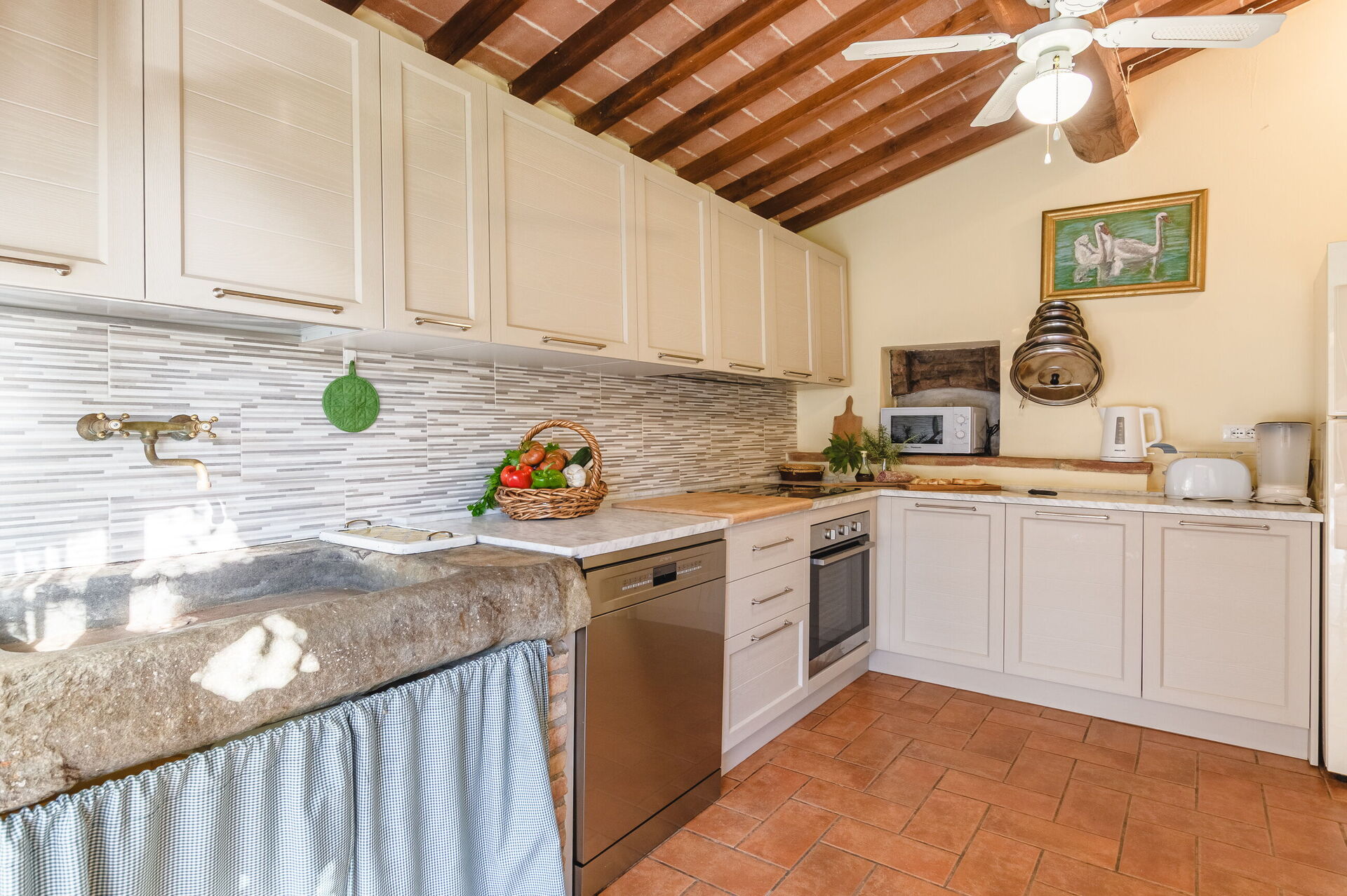 In tutto è possibile ospitare fino a 10 posti letto grazie alle 5 camere di cui dispone questa casa di campagna in affitto in Toscana.