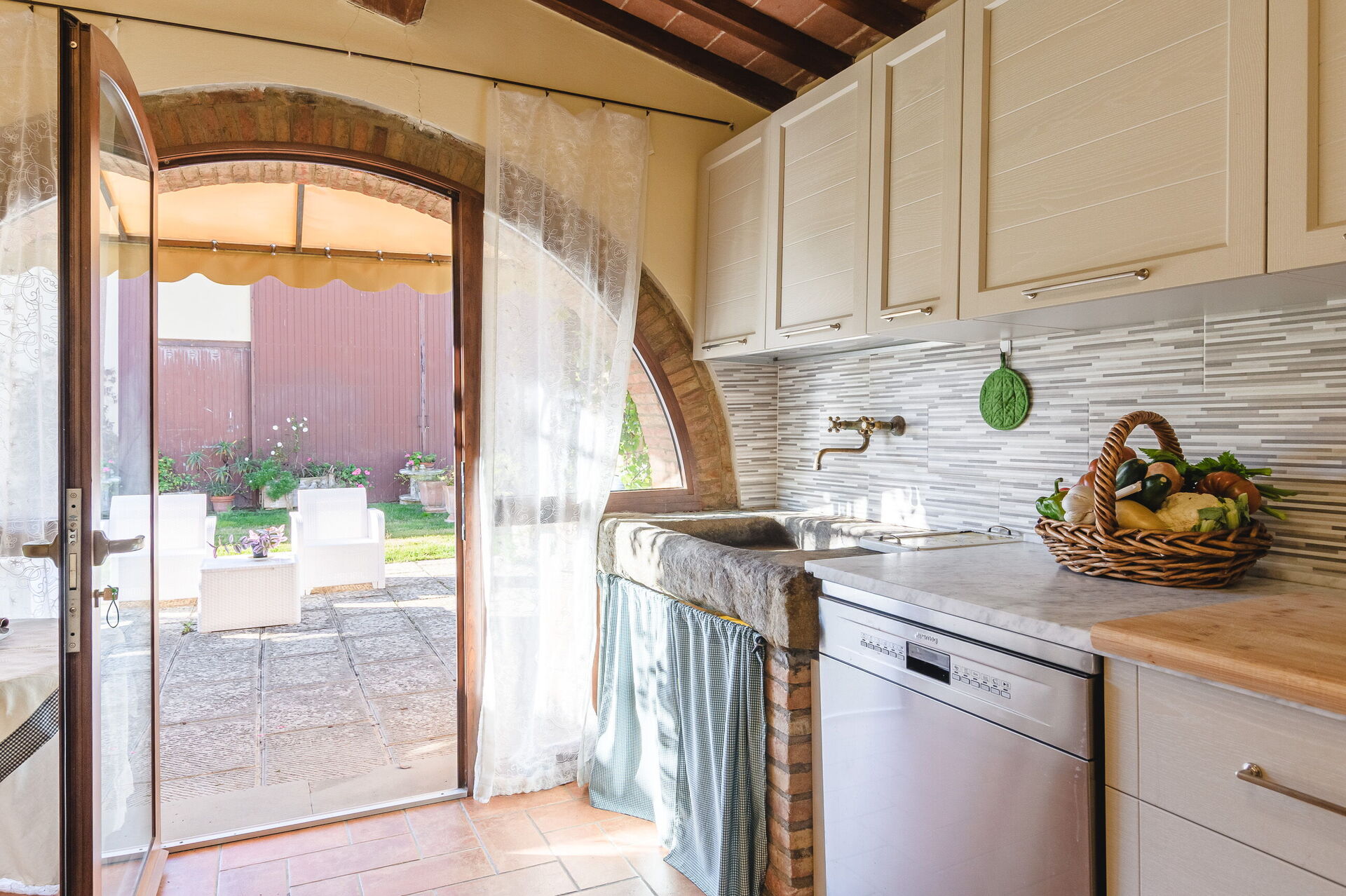 Il casale in affitto è suddiviso in 3 appartamenti non collegati internamente ma situati nello stesso edificio: al piano terreno è presente uno degli appartamenti e un grande salone che serve ad ospitare gli ospiti tutti insieme grazie ai suoi ampi spazi, alla cucina e alla zona pranzo/soggiorno. Gli altri due appartamenti si trovano al primo piano dell'edificio.