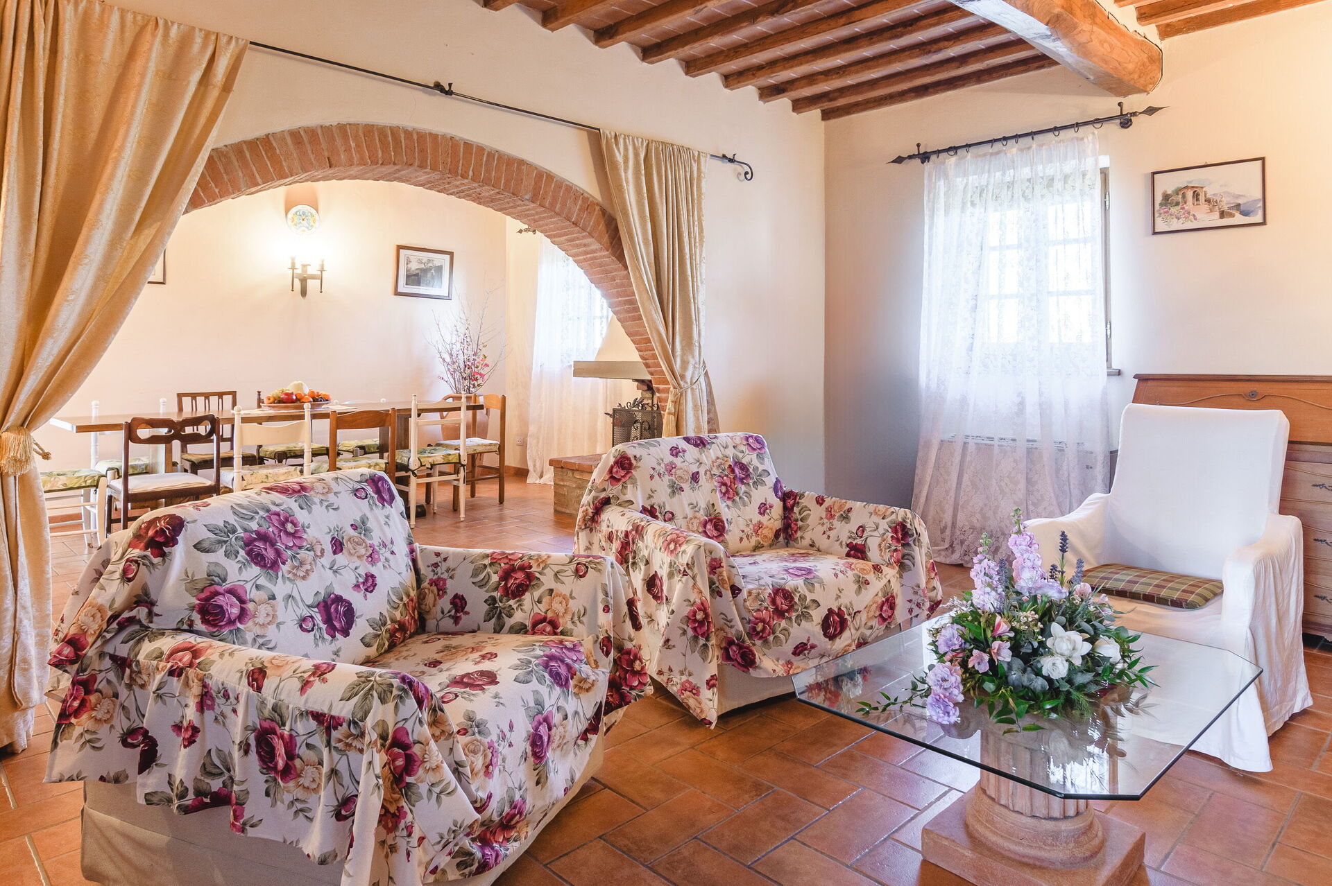 La proprietà si trova nel cuore della Valdichiana e affittando questa casa vacanze vi troverete immersi nella vita di campagna: la famiglia dei proprietari infatti vive nei pressi della villa in affitto e si occupa personalmente dei campi situati nei pressi del casale e da cui ricavano vino, olio e cereali.