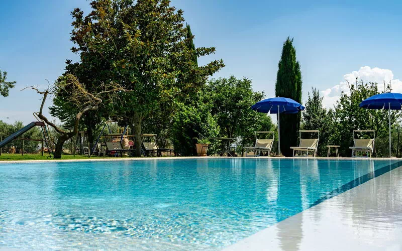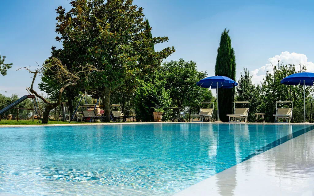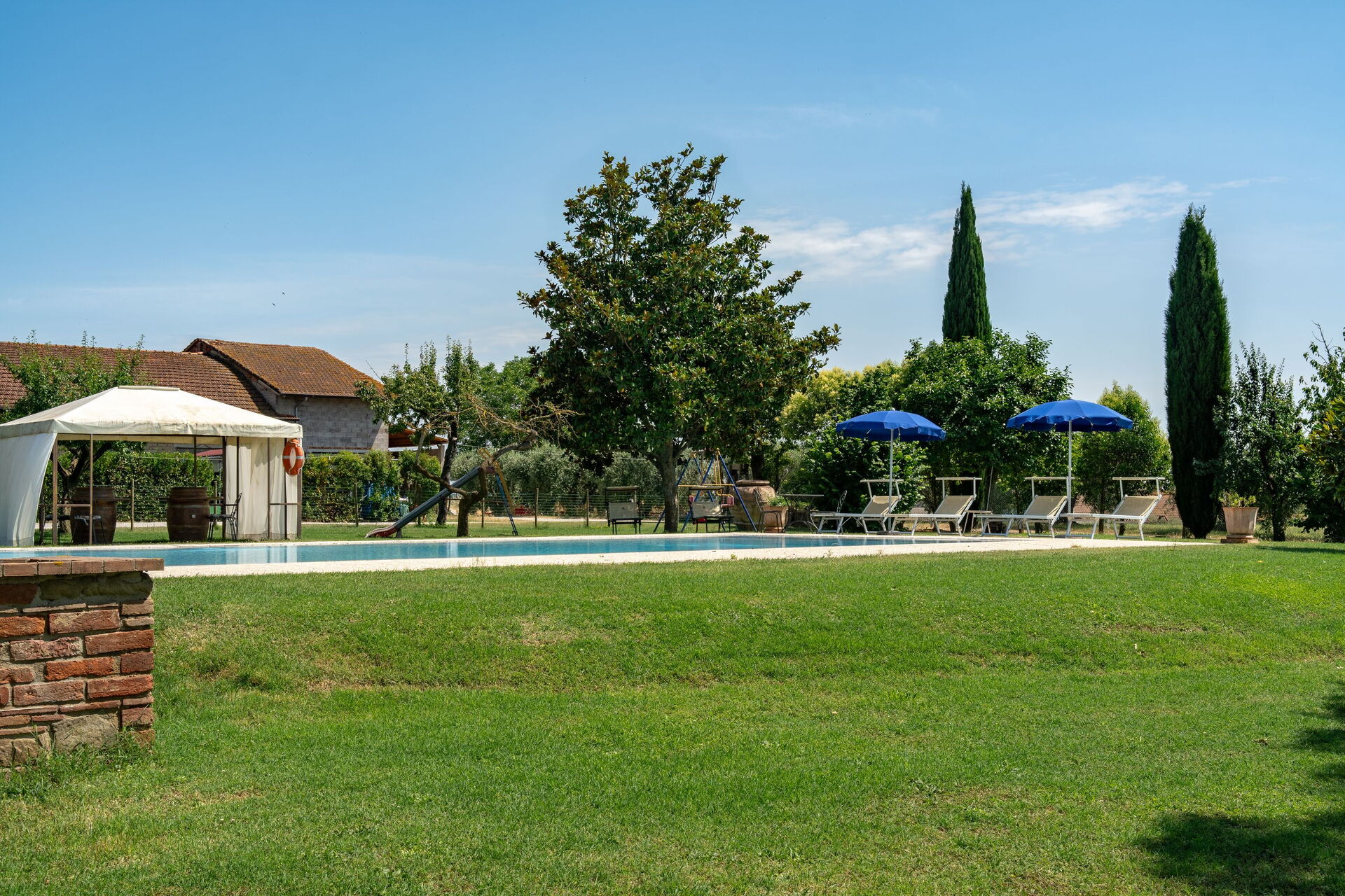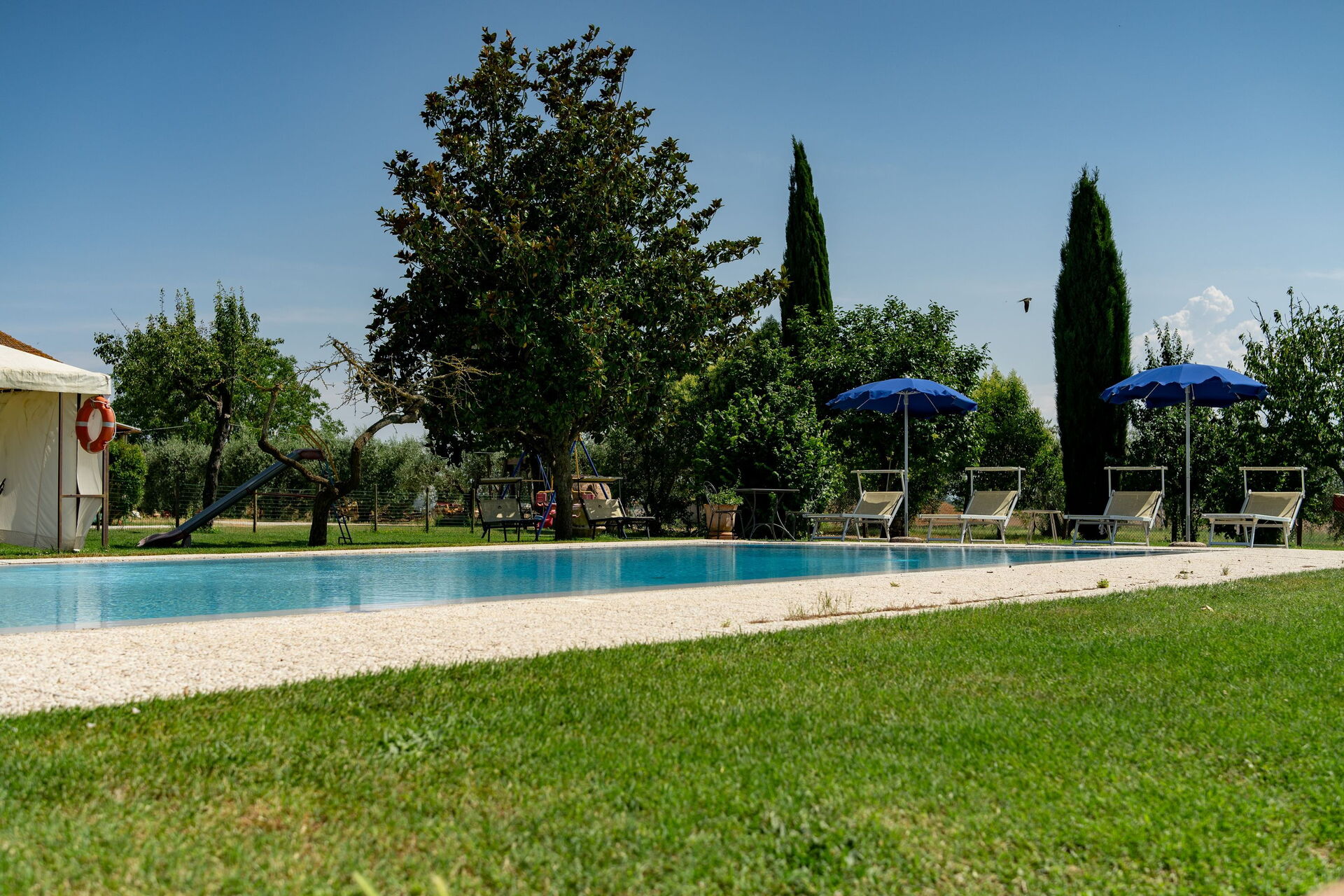 La piscina si trova a circa 30 metri di distanza dal casale e anche se si trova nei pressi della casa dei proprietari e di edifici rurali è riservata all'uso esclusivo degli ospiti.