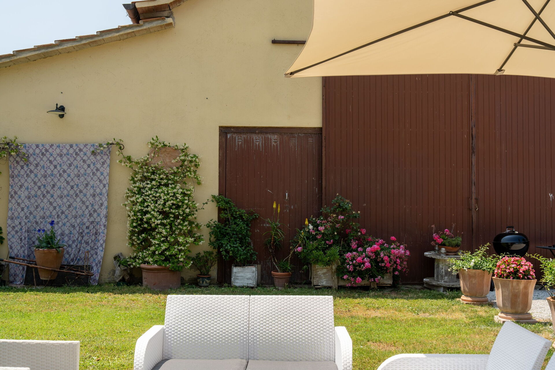 Davanti alla casa vacanze gli ospiti potranno utilizzare anche un grande spazio esterno attrezzato per mangiare all'aria aperta (barbecue, forno a legna, tavolo e sedie).
