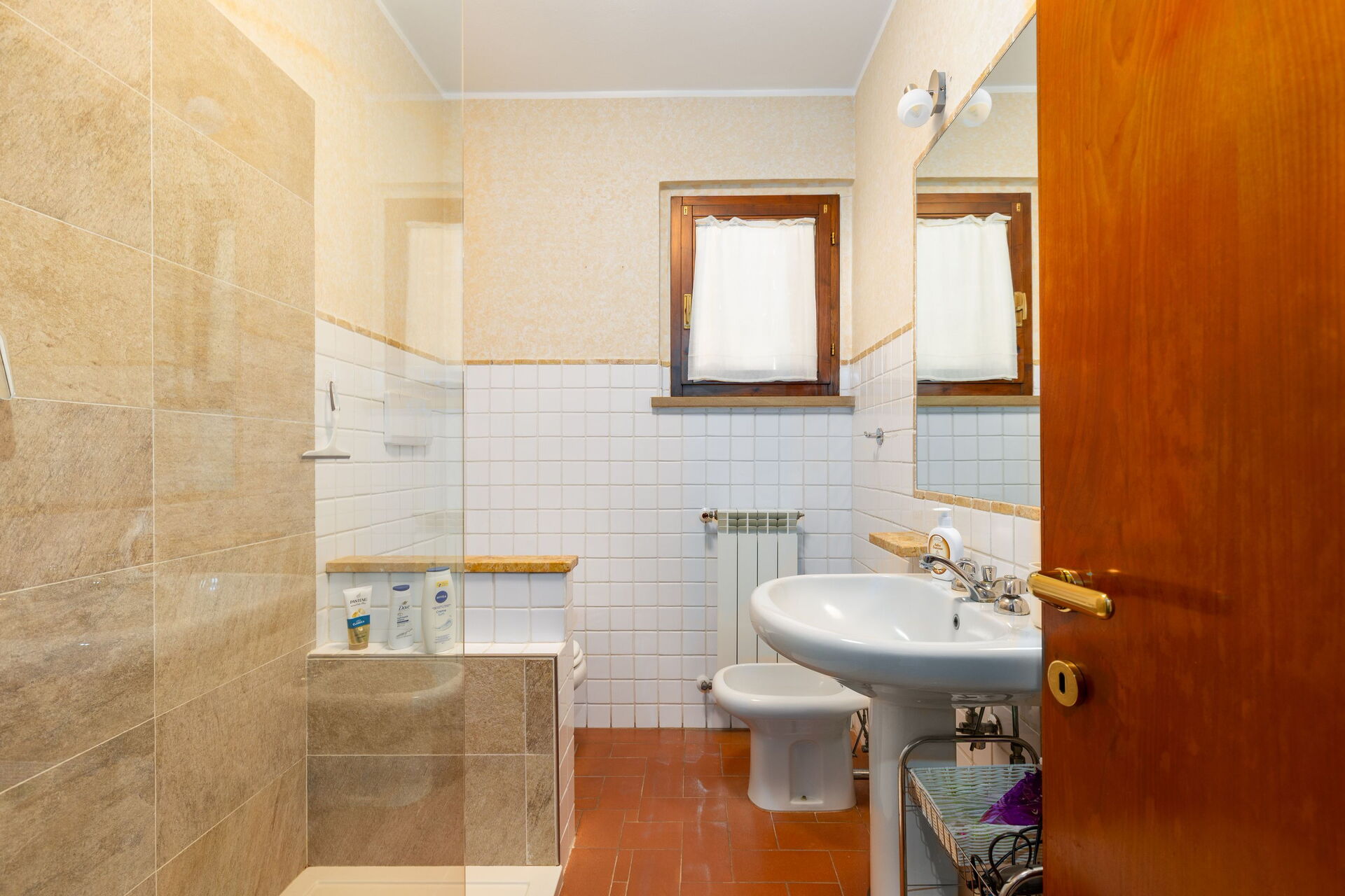 Primo piano: camera matrimoniale (aria condizionata), camera (aria condizionata) con 2 letti singoli (unibili su richiesta), bagno con doccia.