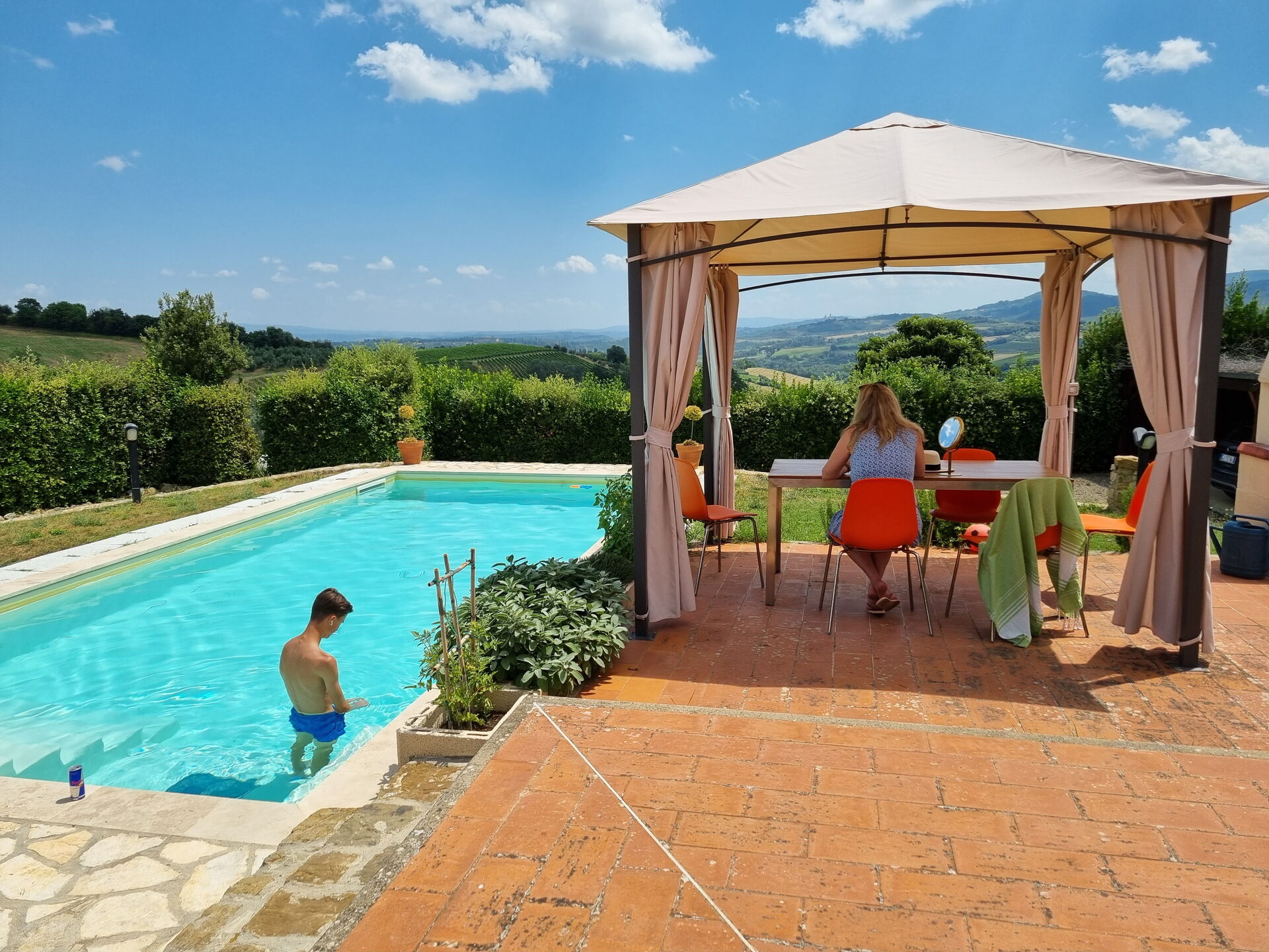 Excellent villa on a ridge between Gambassi Terme and Certaldo. The ~200m elevation and breeze helps on hot summer days. Beautifully finished building with all the amenities you need, and a nice distant view of San Gimignano over the vineyards and olive groves.The pool and area was clean. Dorota is a great host!