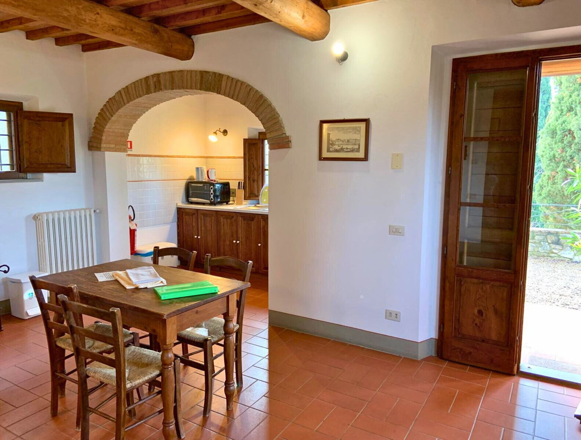 Piano terreno: ingresso su zona pranzo con angolo cottura (freezer, forno elettrico).