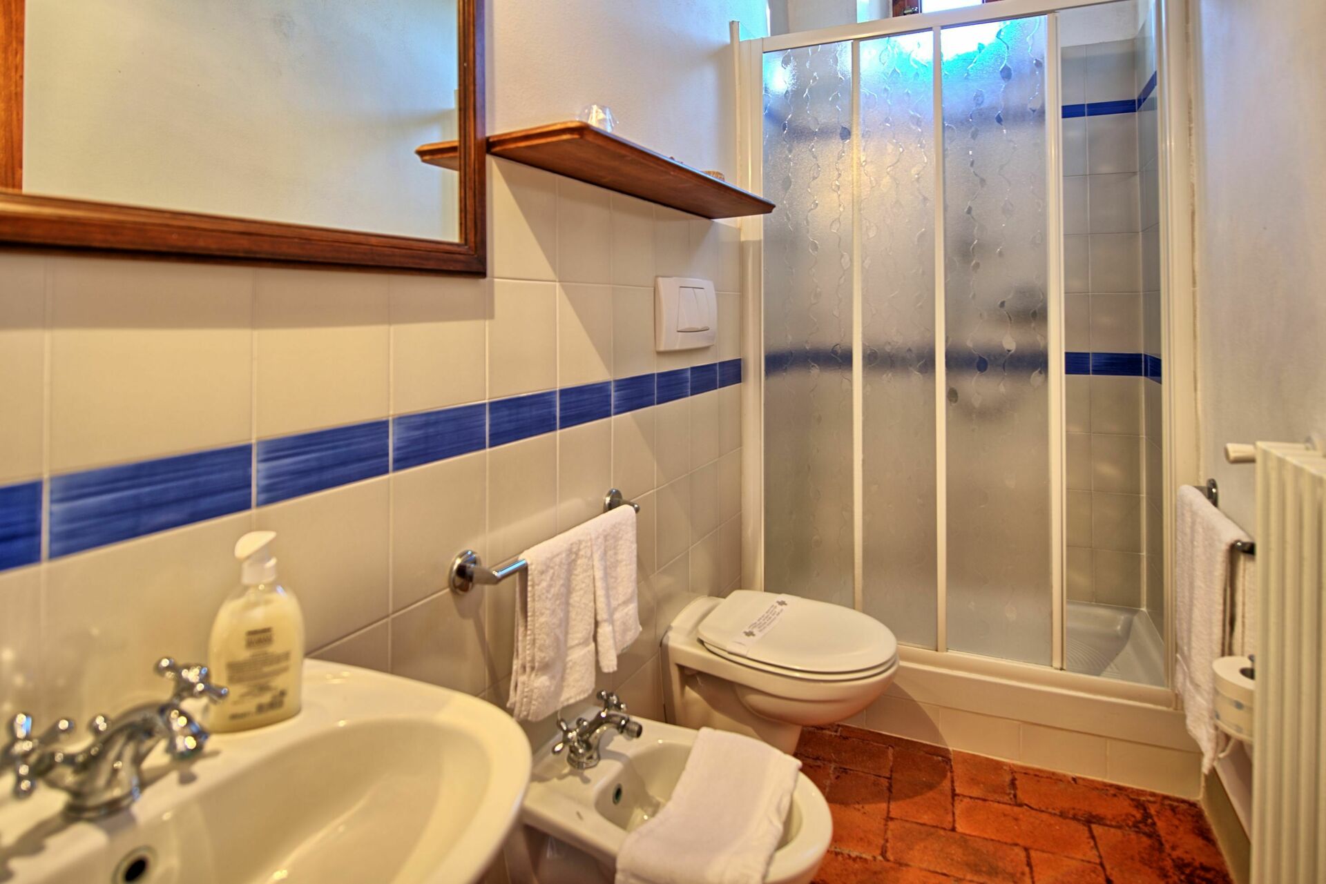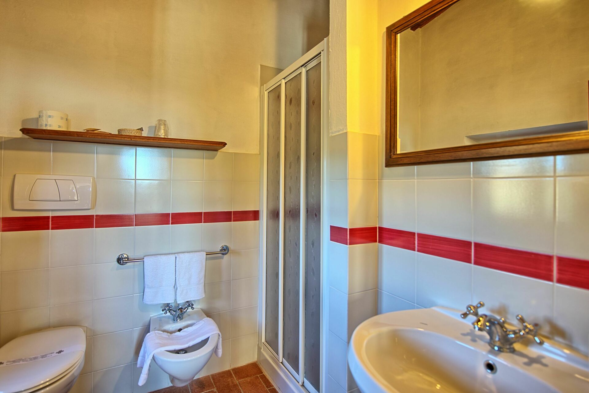 2° Piano: 2 camere matrimoniali con bagno privato con doccia, camera con due letti singoli con bagno privato con doccia.