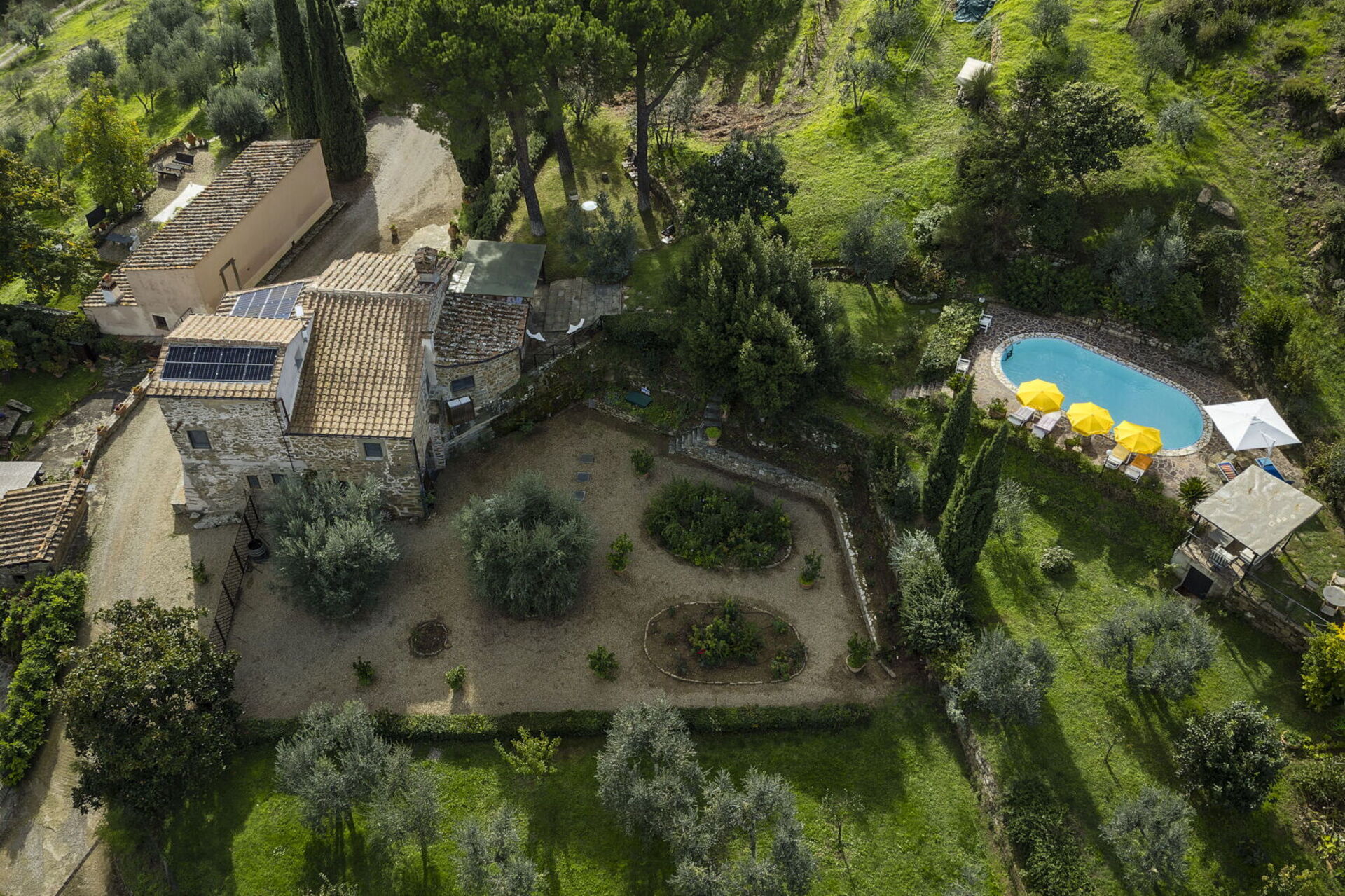 La proprietà fa parte di un antico e piccolissimo nucleo di case contadine e ancora oggi nei terreni circostanti si coltivano viti e olivi che producono il famosissimo vino Chianti e un eccellente olio di oliva.