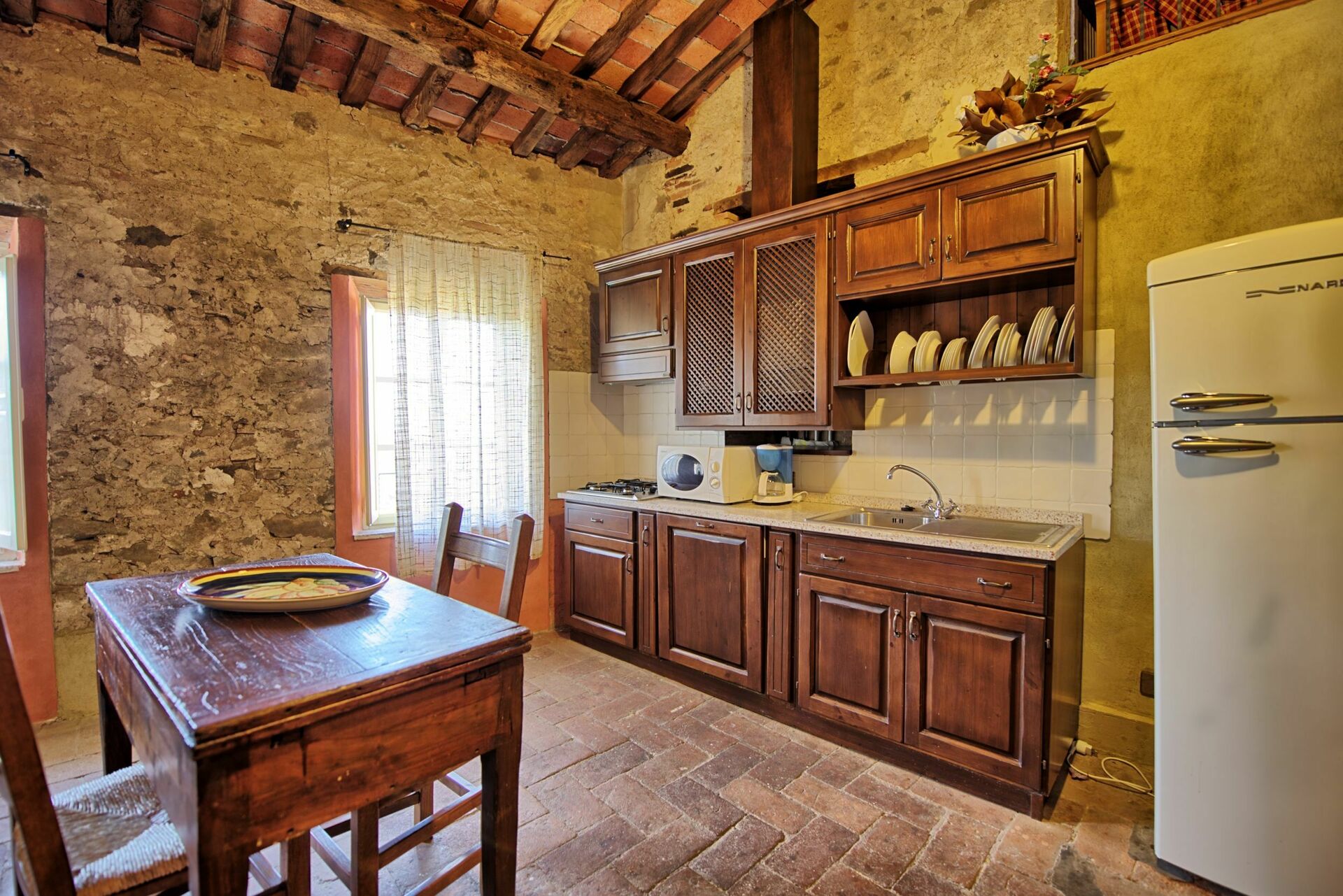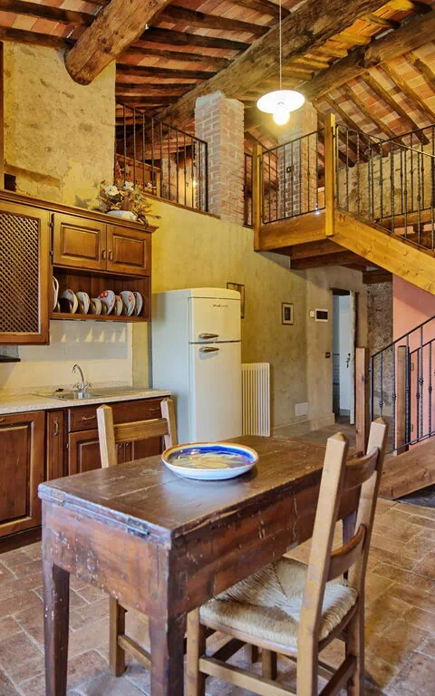 2° Piano: zona pranzo con angolo cottura (lavastoviglie, microonde, freezer, macchina da caffè americano) e camino, bagno con doccia.