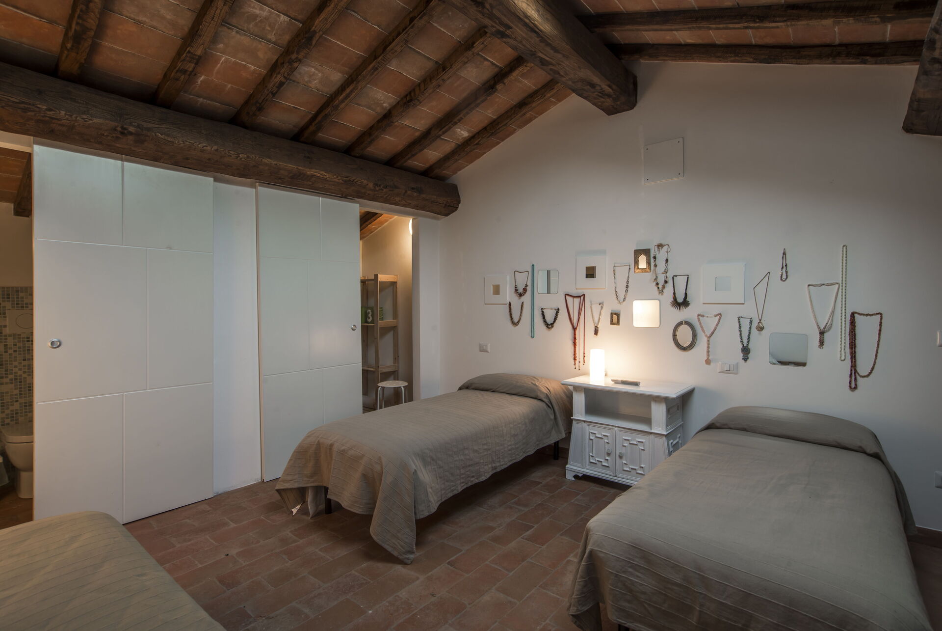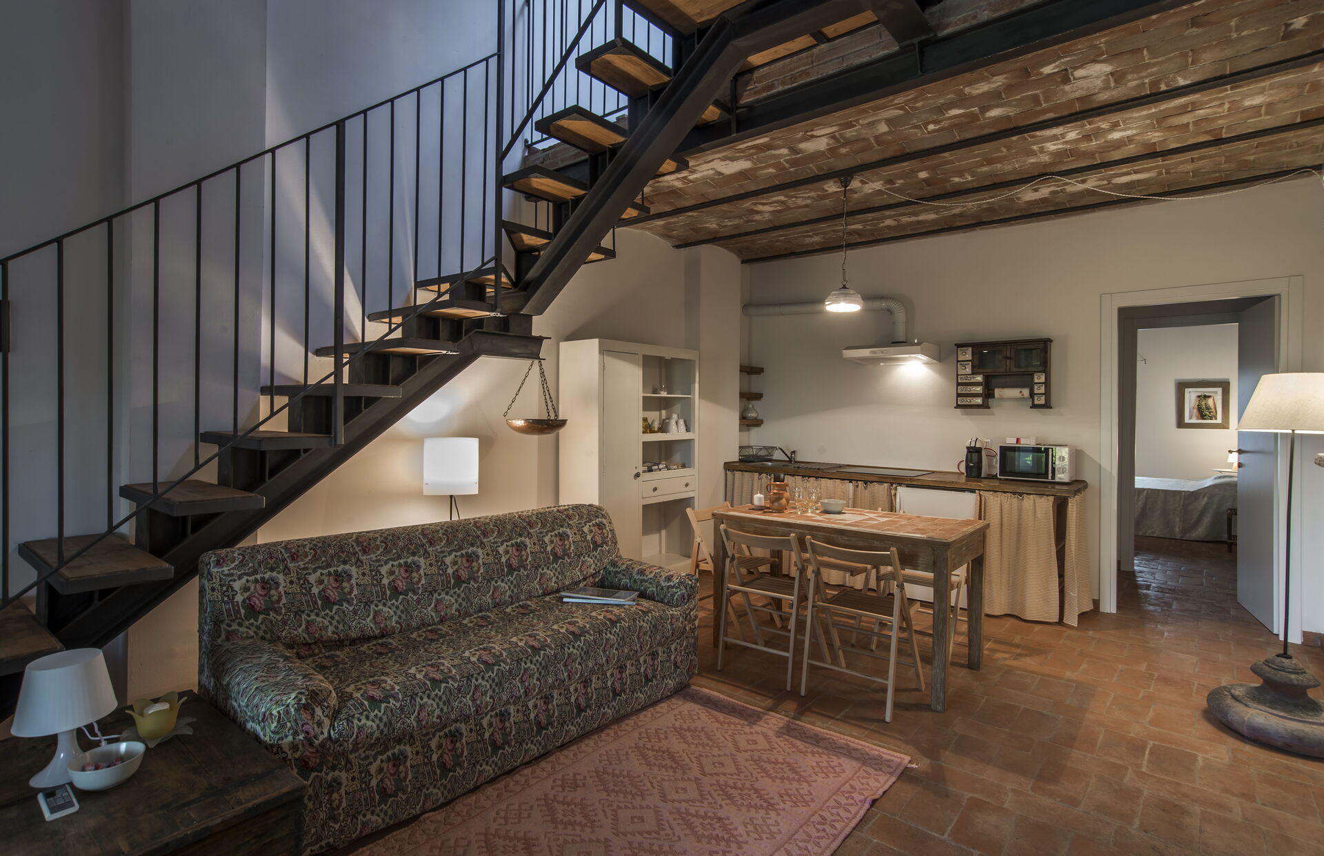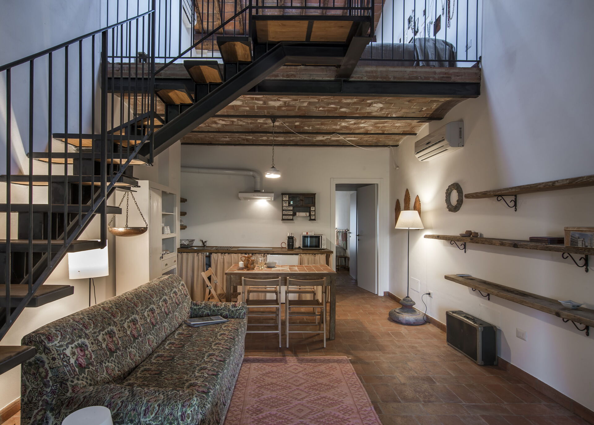 Primo piano: ampia zona giorno con soggiorno (con divano letto matrimoniale extra e su richiesta) e con accesso ad un soppalco con letto matrimoniale (trasformabile su richiesta in 2 letti singoli) e un letto singolo e un bagno con doccia; zona pranzo con cucina (lavastoviglie, frigo, piano cottura a induzione, microonde, macchina da caffè, ventilatore), camera matrimoniale, bagno con doccia.