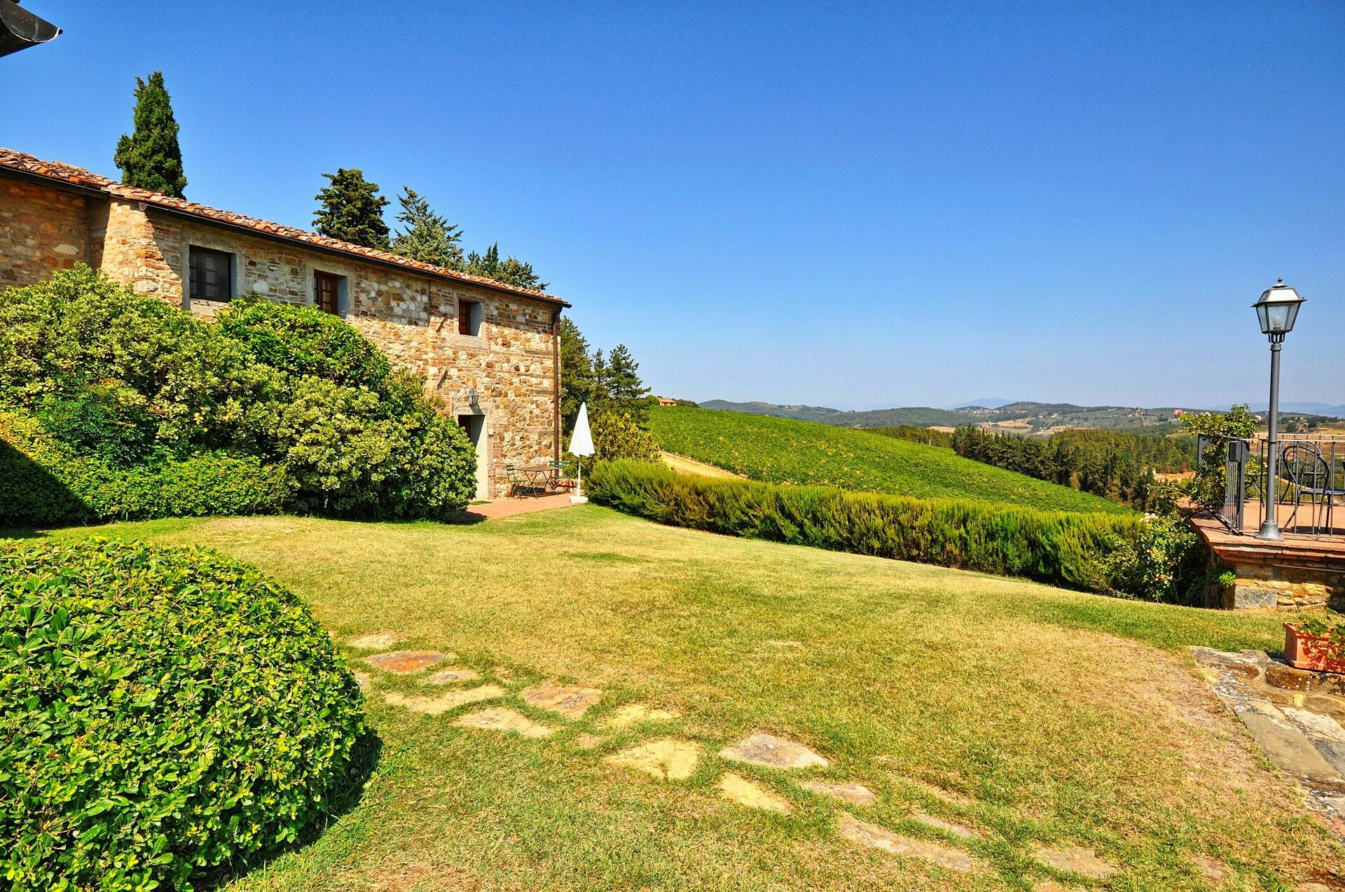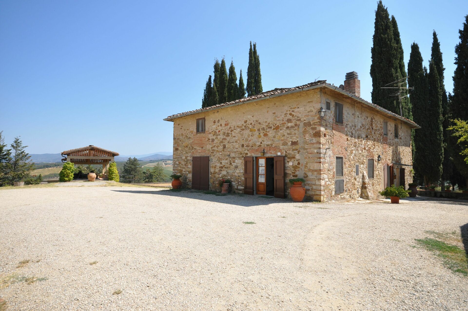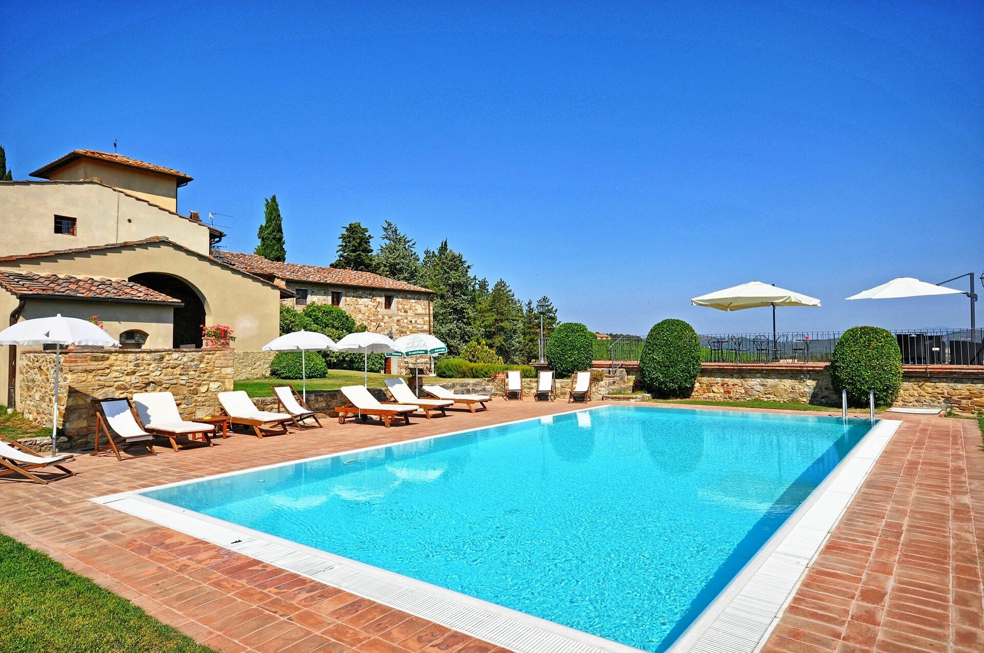 Bella proprietà composta da 6 appartamenti ricavati dalla ristrutturazione di un antico complesso colonico. Situata sulle colline del Chianti, la proprietà dispone di ampi spazi esterni e di una bella piscina panoramica che si affaccia sugli splendidi vigneti della tenuta. La posizione della struttura è strategica trovandosi a breve distanza da Mercatale (negozi di ogni genere) e da Firenze che dista solo 22 km.