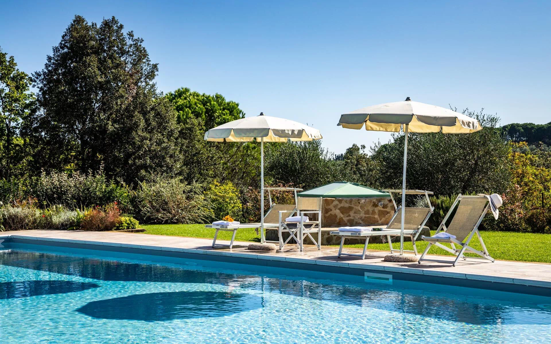 - piscina privata (16 x 8 m - profondità minima 0,7 metri; profondità intermedia: 1,20 metri; profondità massima 1,8 m)