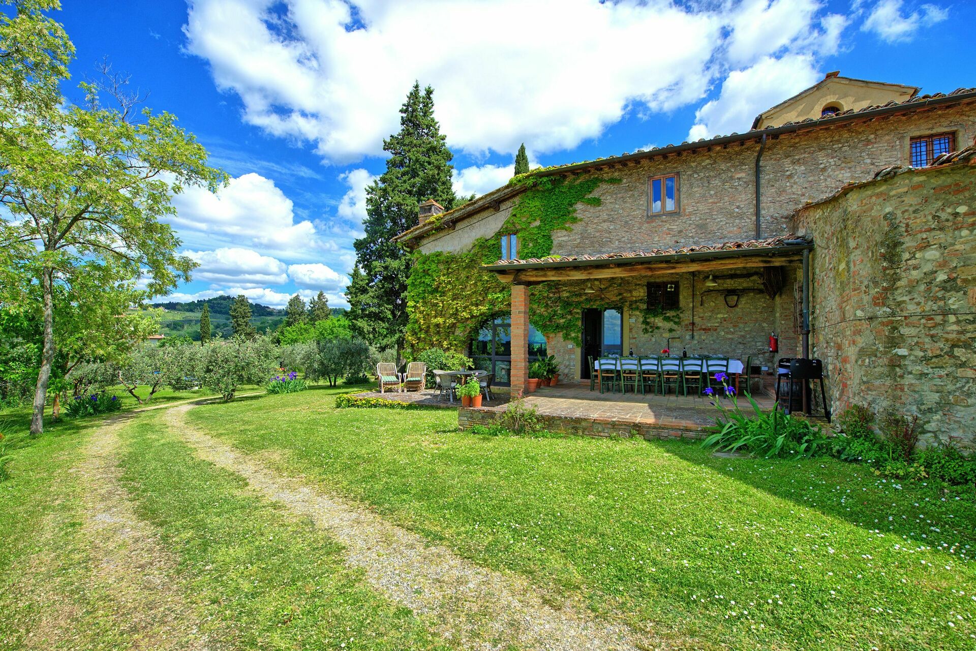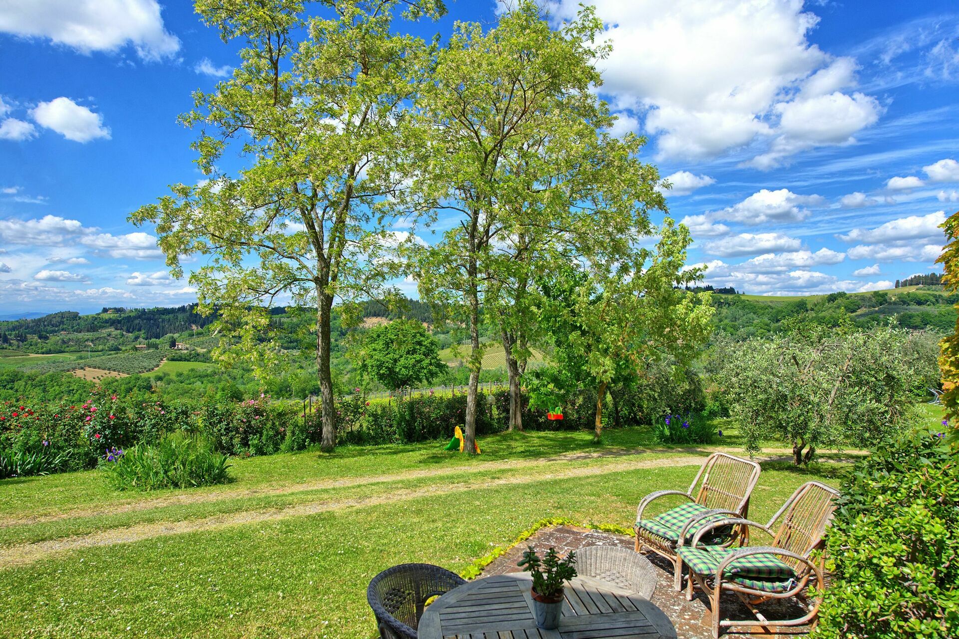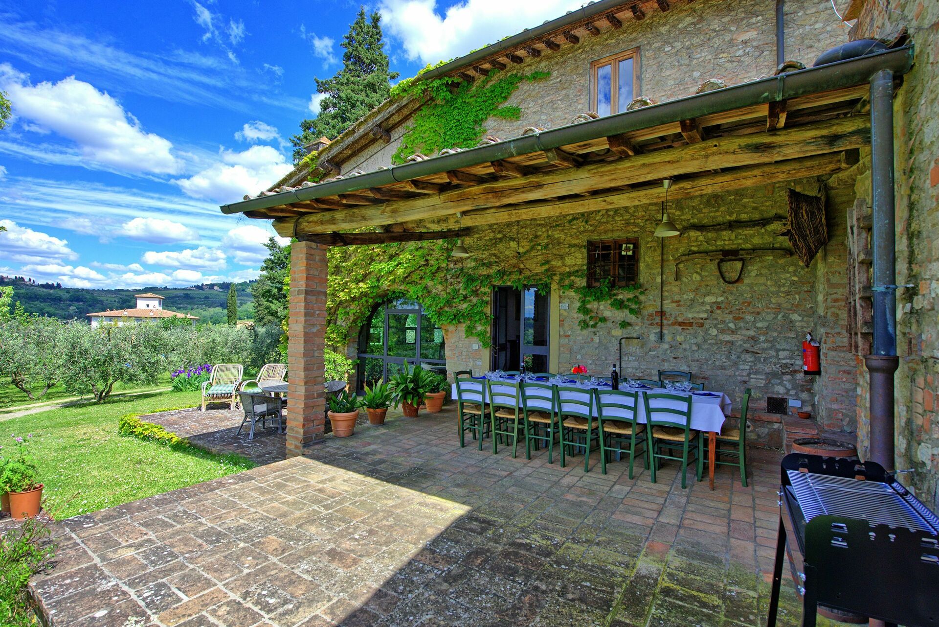 Se siete alla ricerca di una vacanza in famiglia o tra amici non rimarrete delusi da questa panoramica casa immersa nel verde sulle colline del Chianti Fiorentino. Un bel porticato attrezzato con tavolo e sedie vi permetterà di mangiare con una fantastica vista sulla campagna.